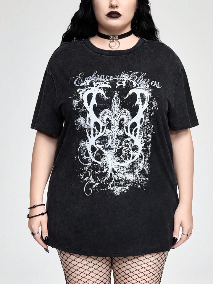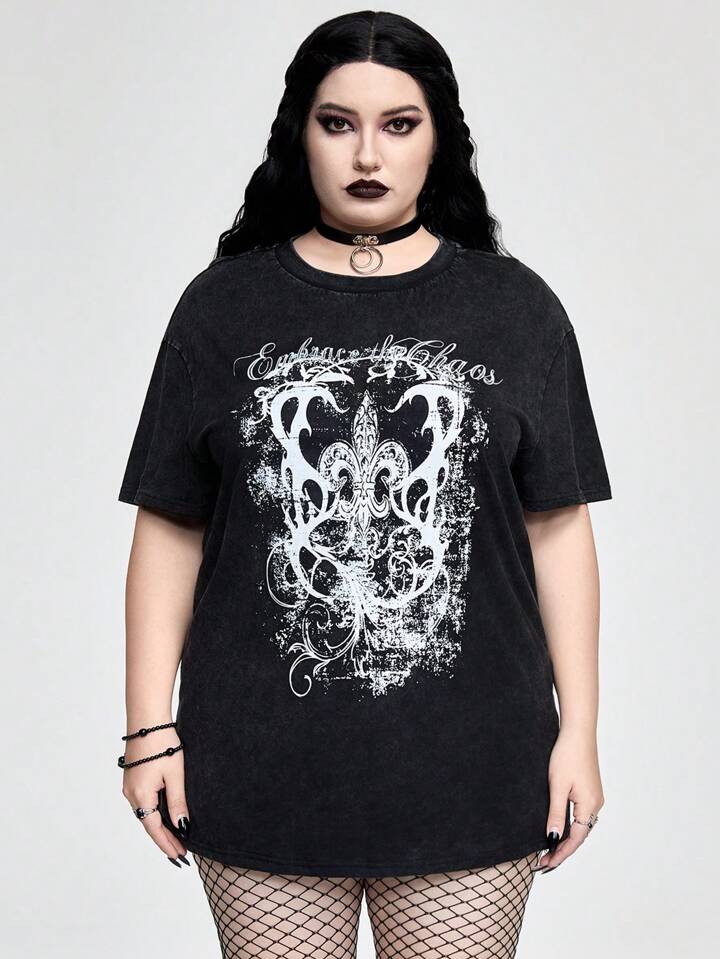 Grunge Punk تي شيرت مقاس كبير بطبعة عنكبوت مظلم وجمجمة وشعار متواجد فوق الملابس المغسولة بالثلج المهترئة