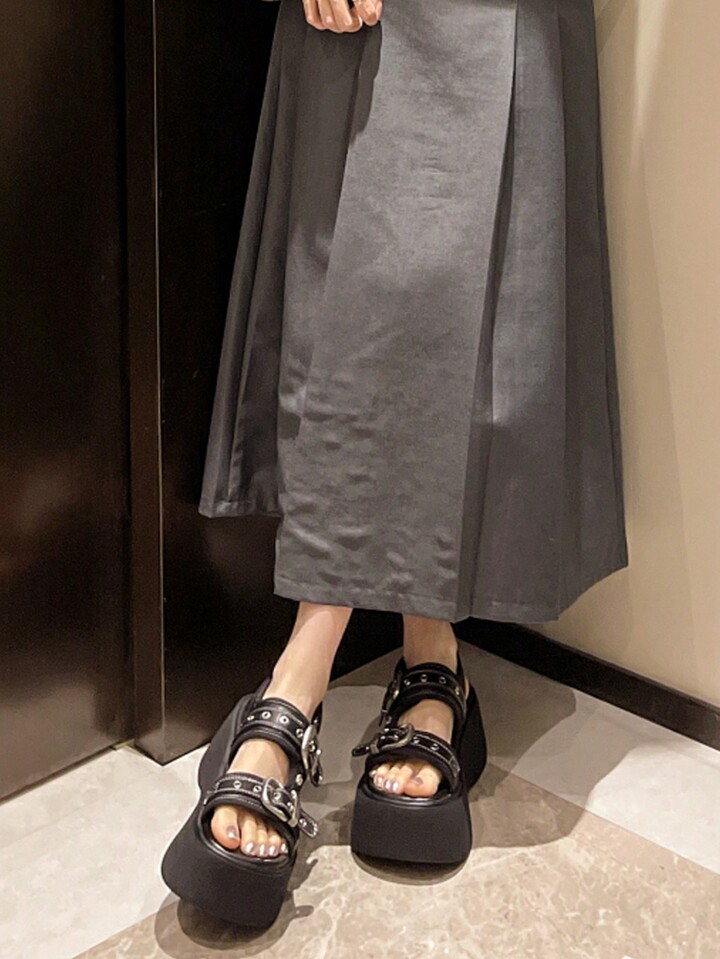 Grunge Punk صنادل روماني ذات نعل سميك مفتوحة الأصبع للأرضية الأوروبية والأمريكية الفاخرة، مصنوعة من معدن ومزودة بحزام وإبزيم ذو طراز عتيق متعدد الاستخدامات