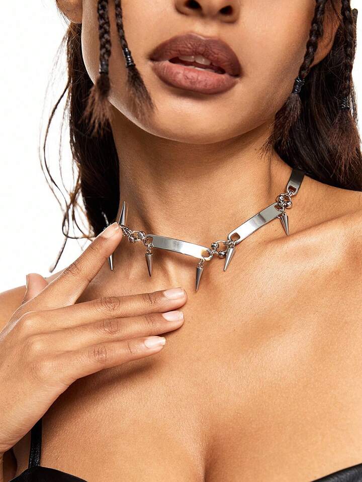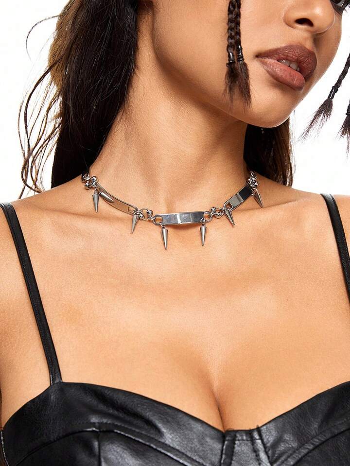 Grunge Punk طقم قلادة بحلقة معدن على الطراز البانك روك موضة