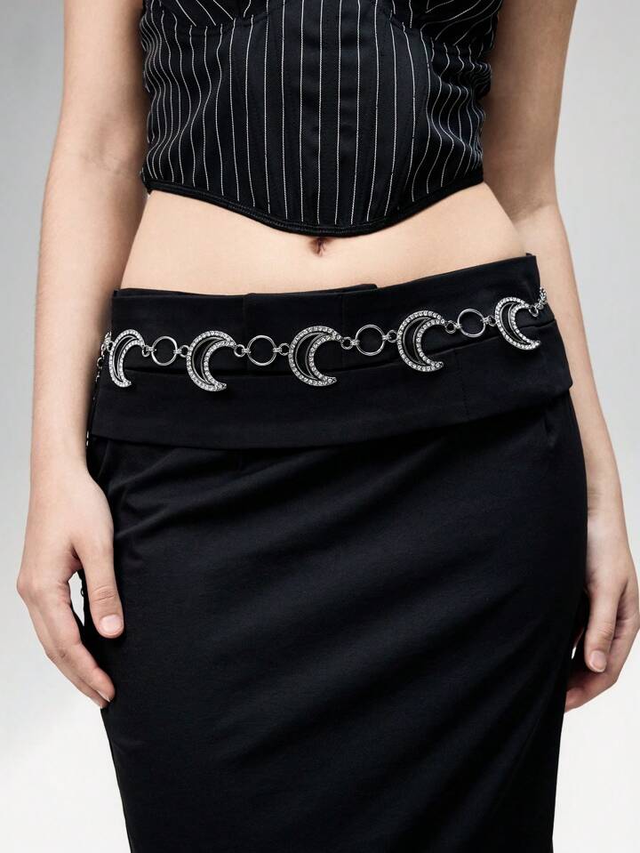 Grunge Punk سلسلة الخصر الهلالية المرصعة بالراينستون أنيقة بتصميم بسيط للنساء