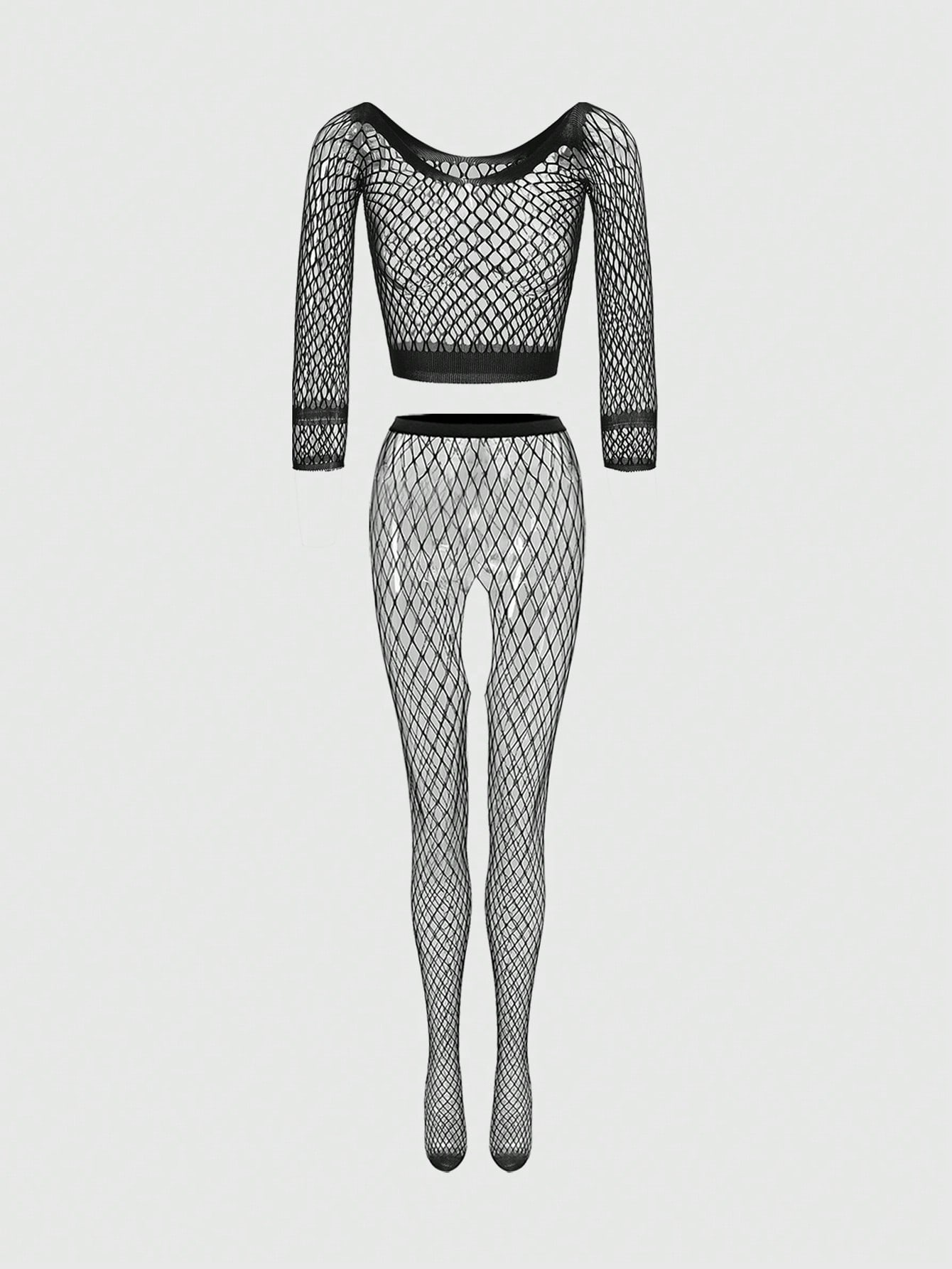 Grunge Punk بوديسوت كاملة طويلة الأكمام وطويلة البنطلون من شبكة عالية المرونة، ملابس داخلية مثيرة، ملائمة لموسم الموسيقى والهيب هوب والباللك