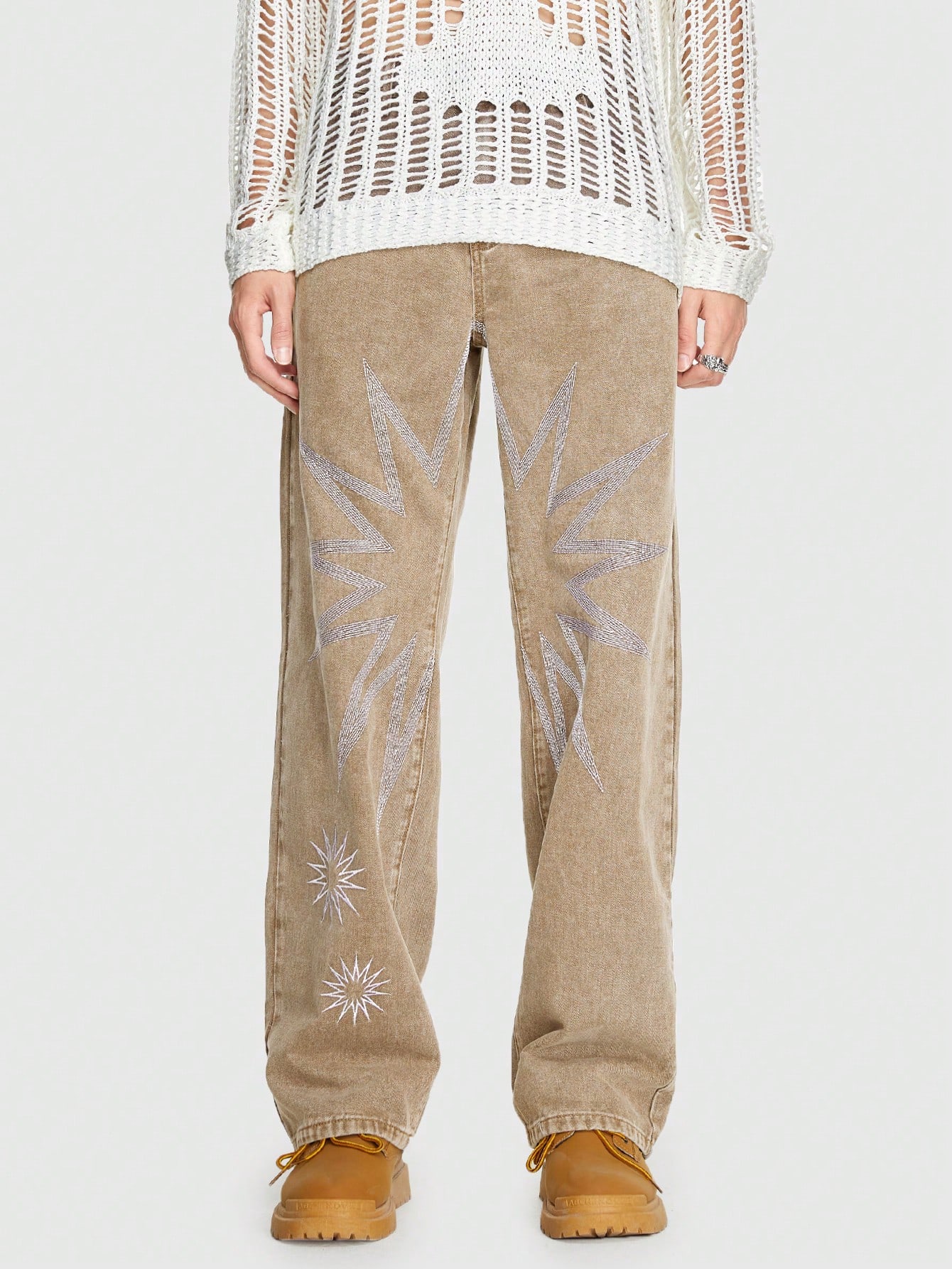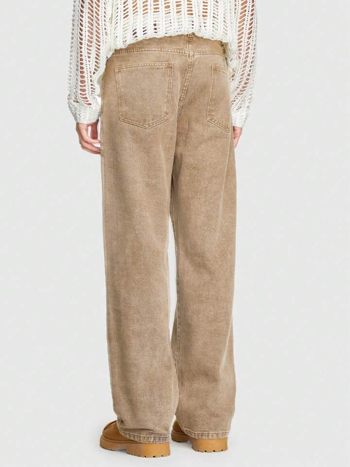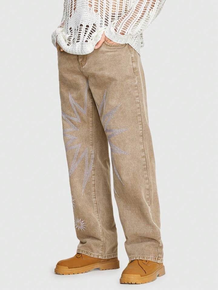 Grunge Punk بنطال جينز بقصة مستقيمة وطبعة جرافيك للرجال