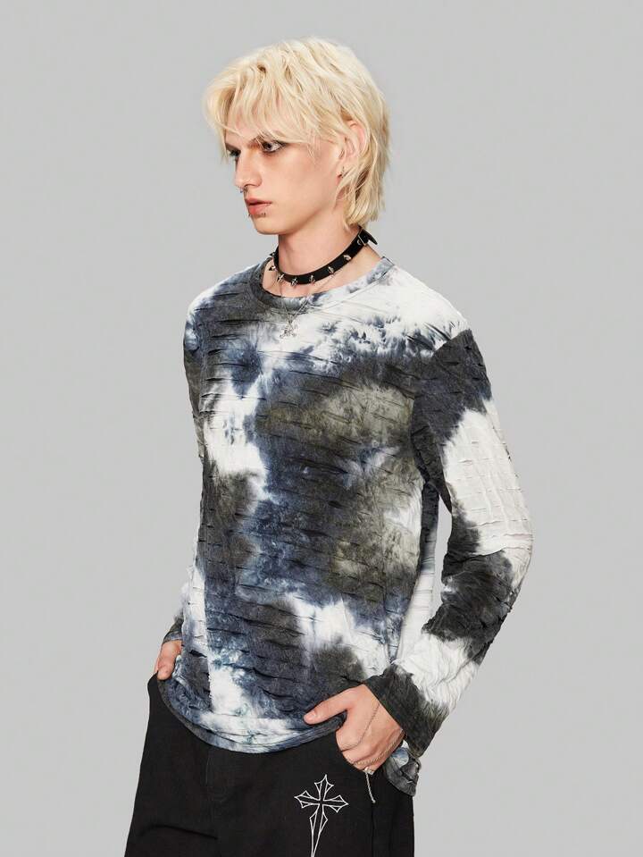 Grunge Punk تي شيرت ممزق صبغ متعادل للشباب