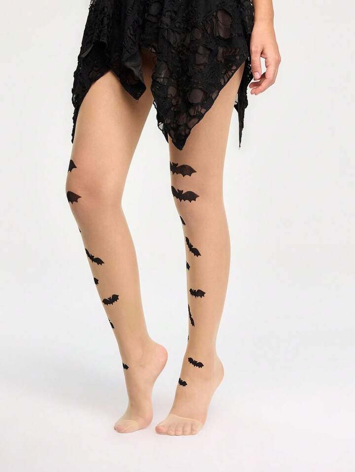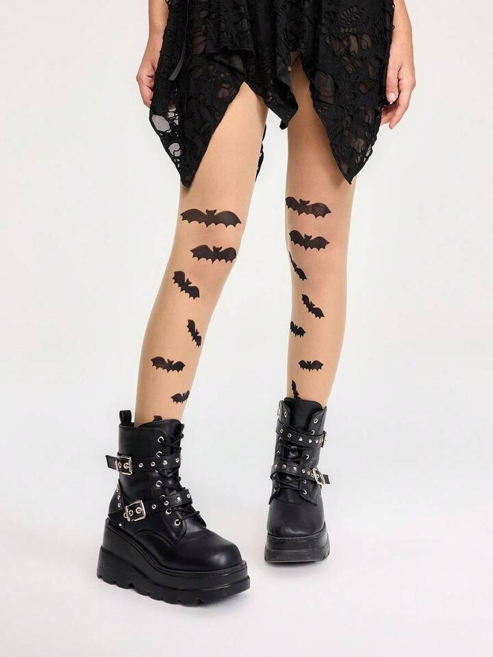 Grunge Punk جوارب طويلة مرنة خفيفة الوزن بطبعة الخفافيش لليلة الهالوين