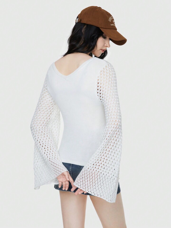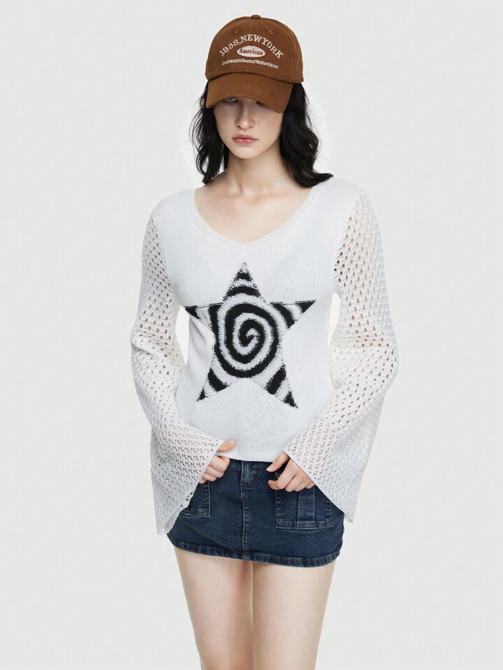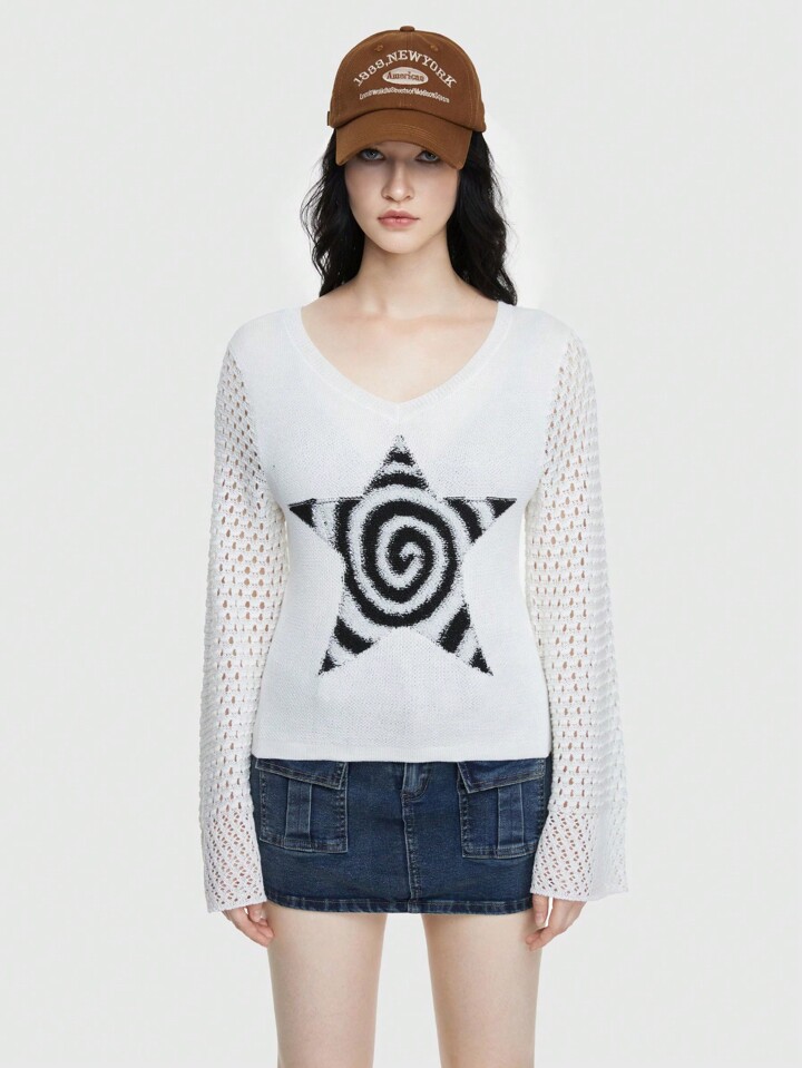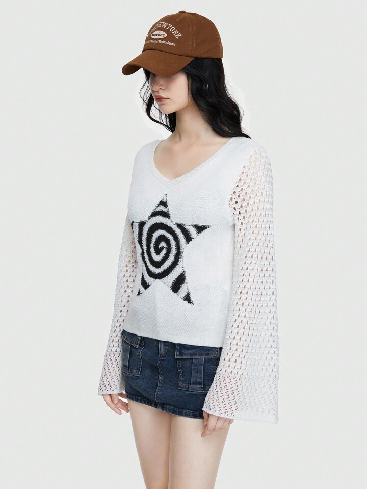 Grunge Punk سويتر مجوّف مع نمط النجوم وأكمام جرسية