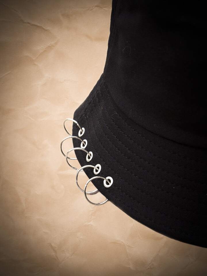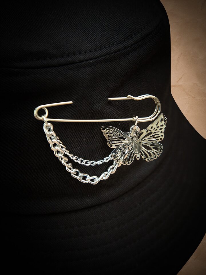 Grunge Punk قبعة دلو مزخرف بفراشة وسلسلة