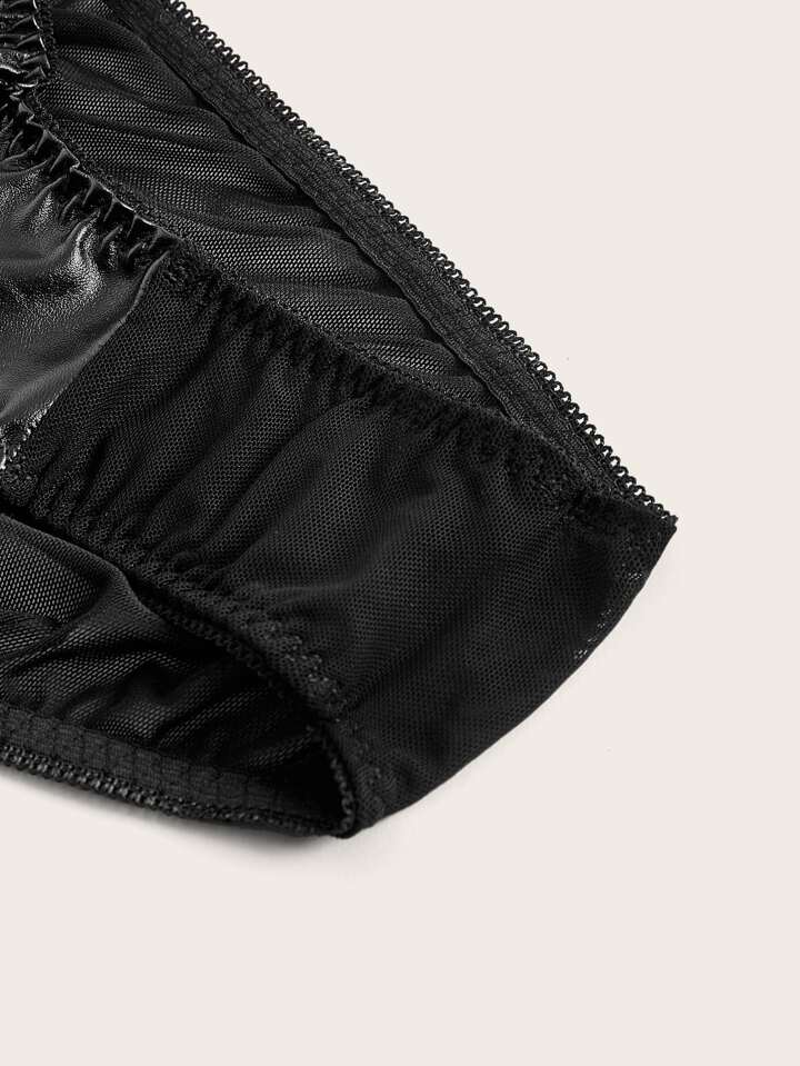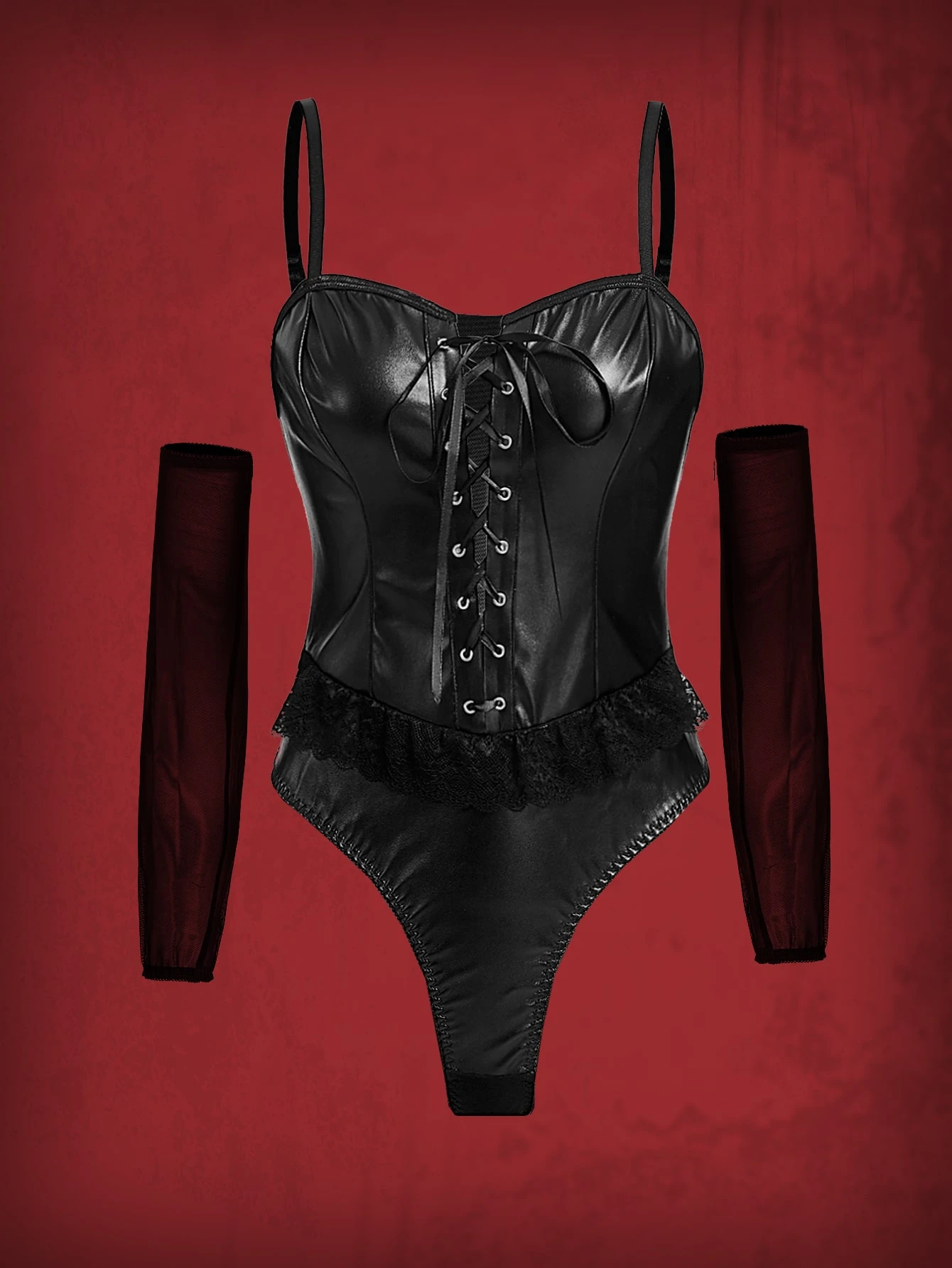 Grunge Punk بدسويت كامي رباط امامي مقلم بكشكش جلد صناعي مع باكمام منفصلة زوج واحد