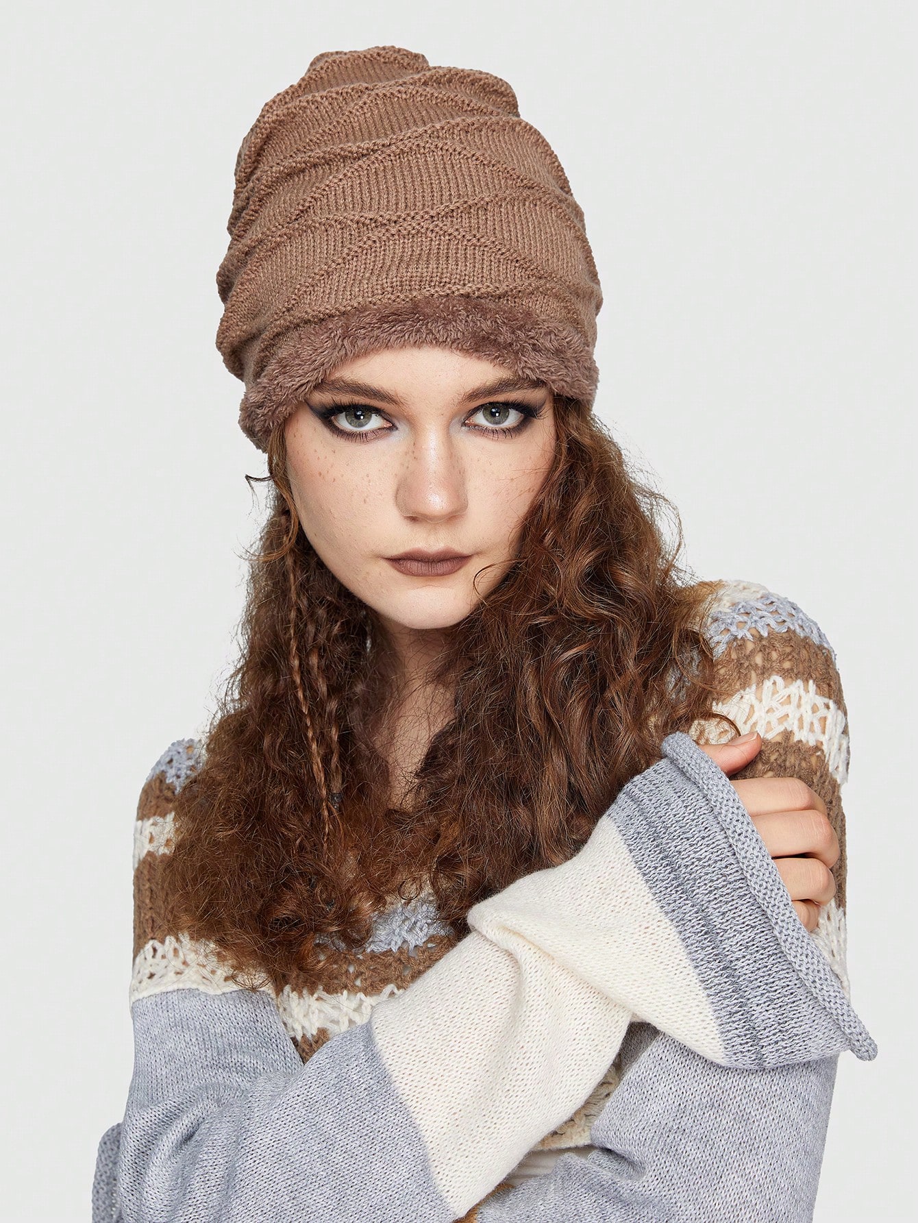 Grunge Punk قبعة كروشيه نسائية ، بني