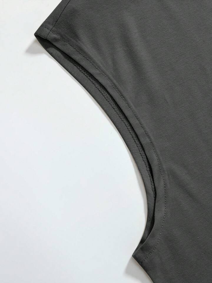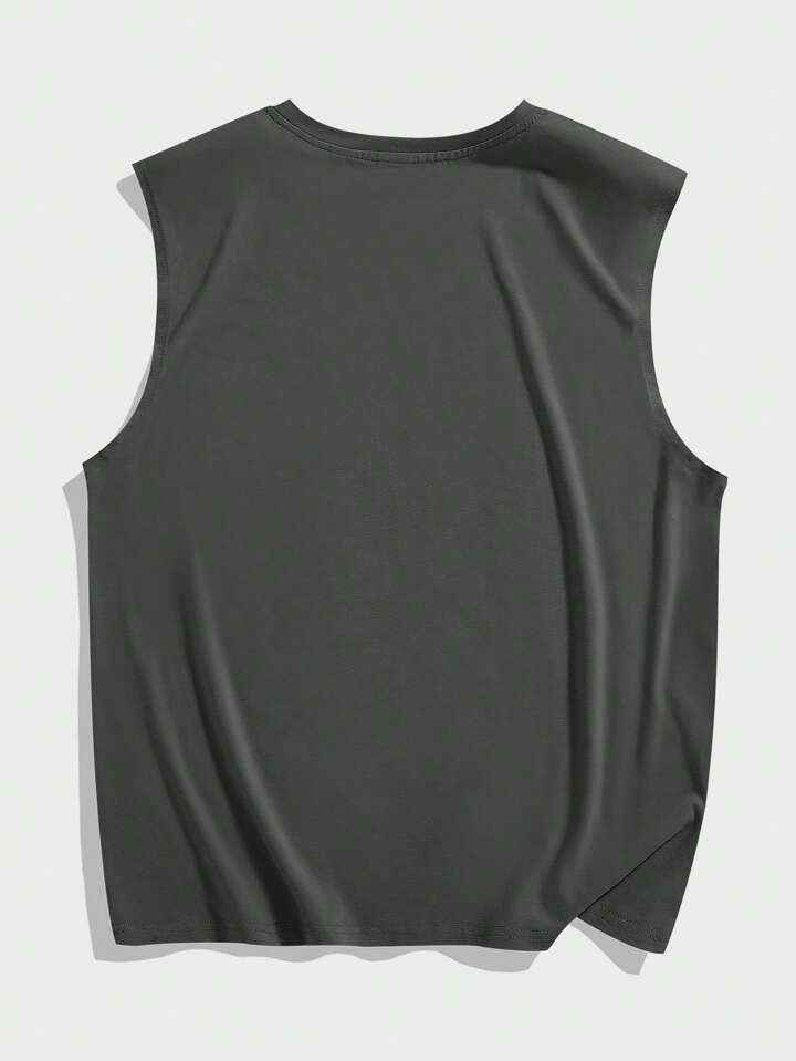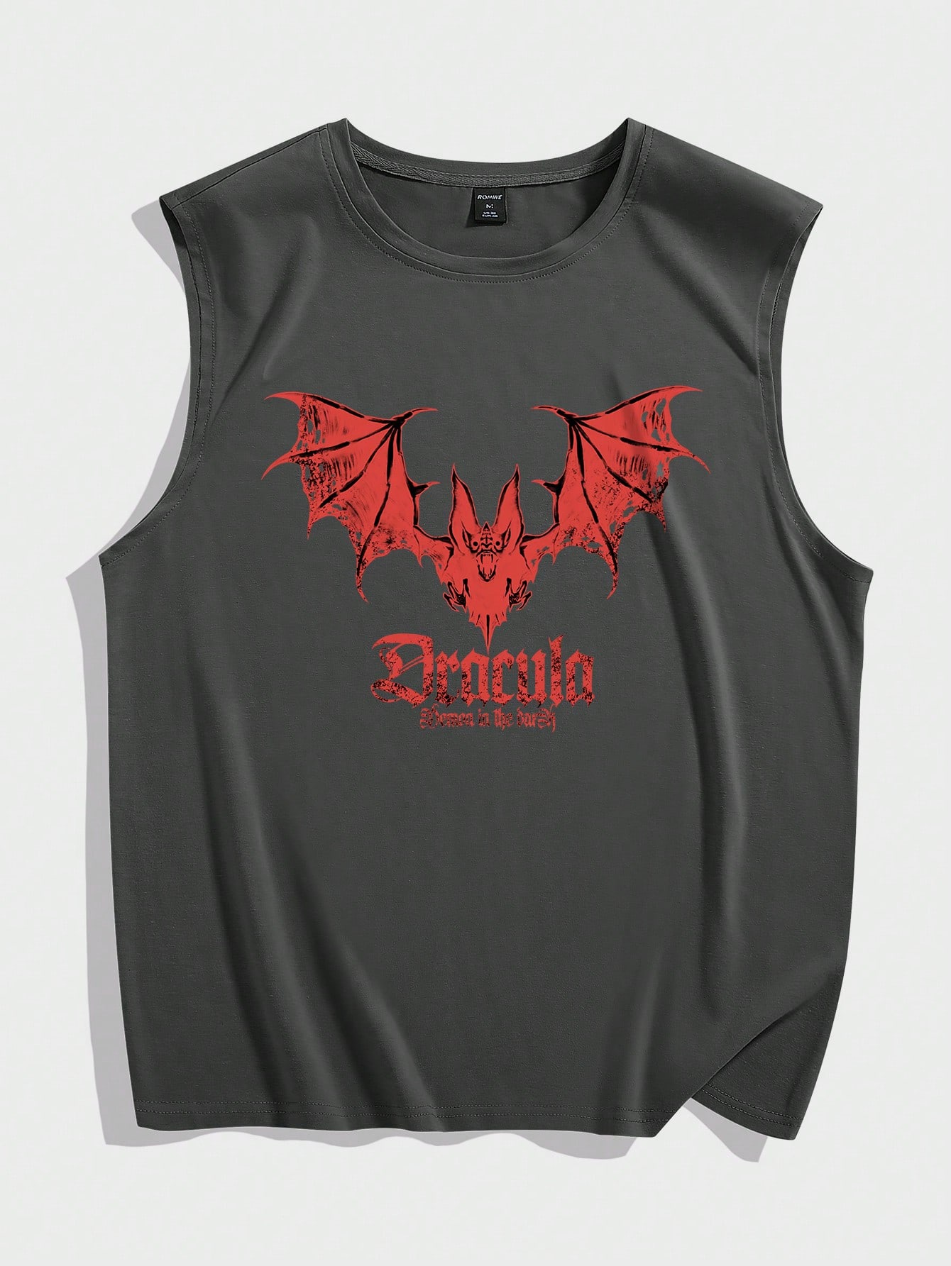 Grunge Punk قميص بدون أكمام للرجال مطبوع عليه رسومات خفاش وحروف