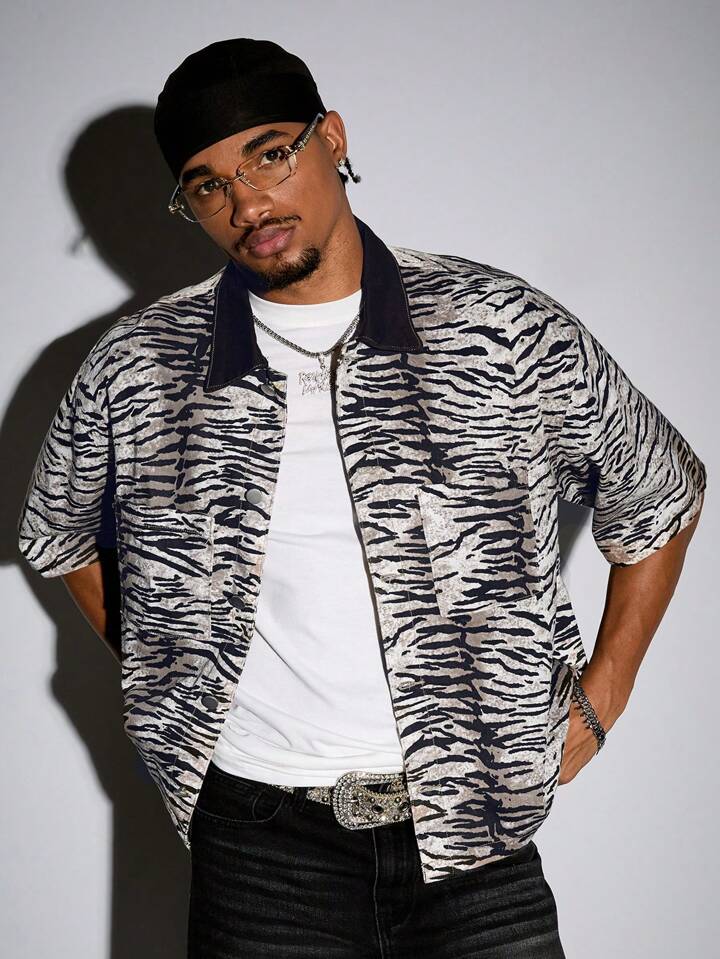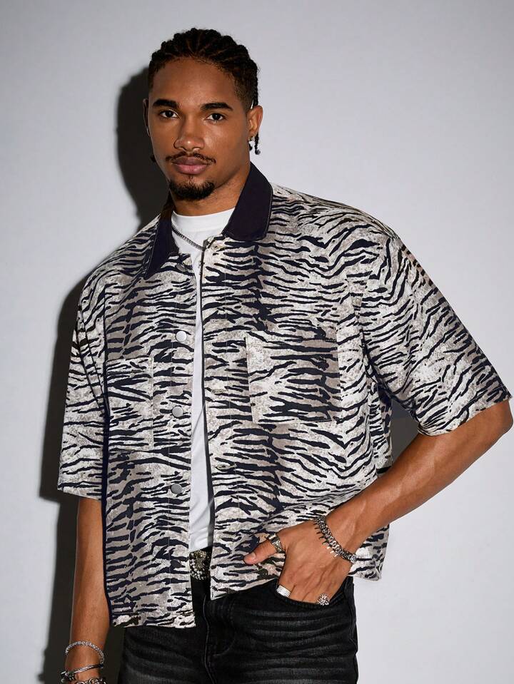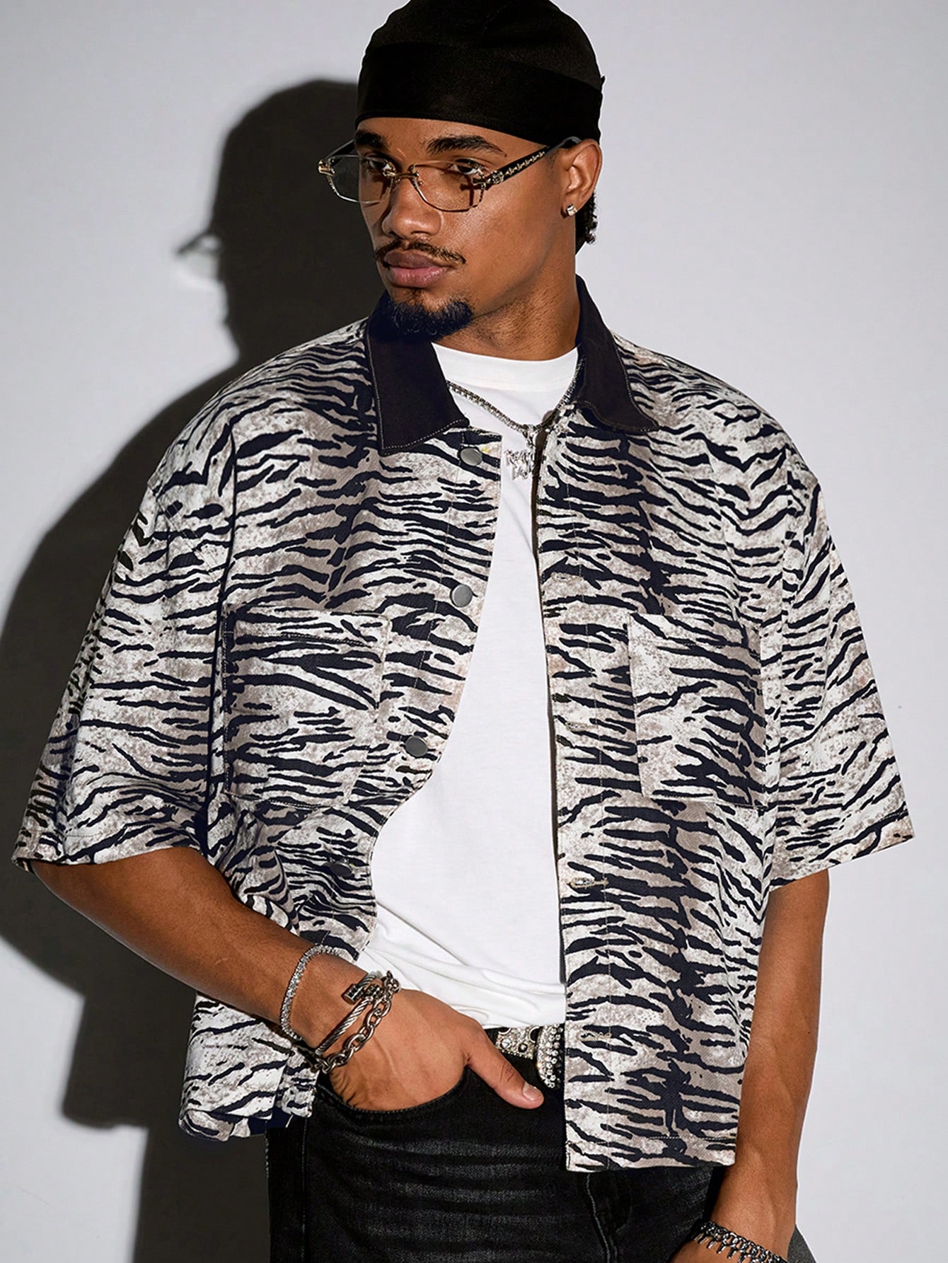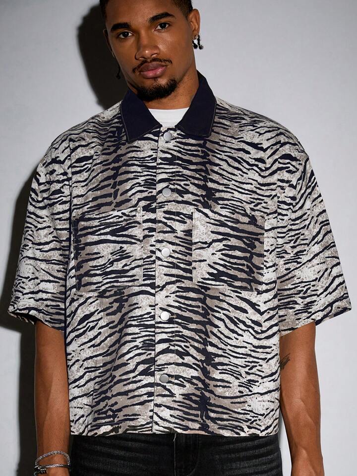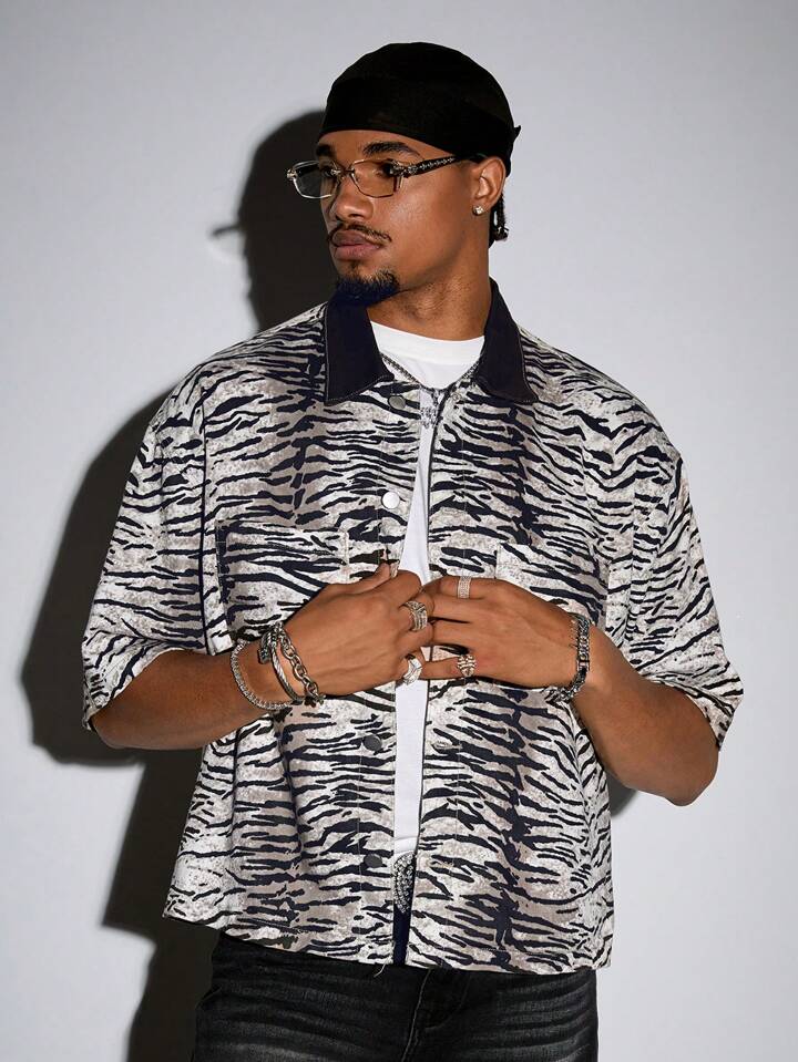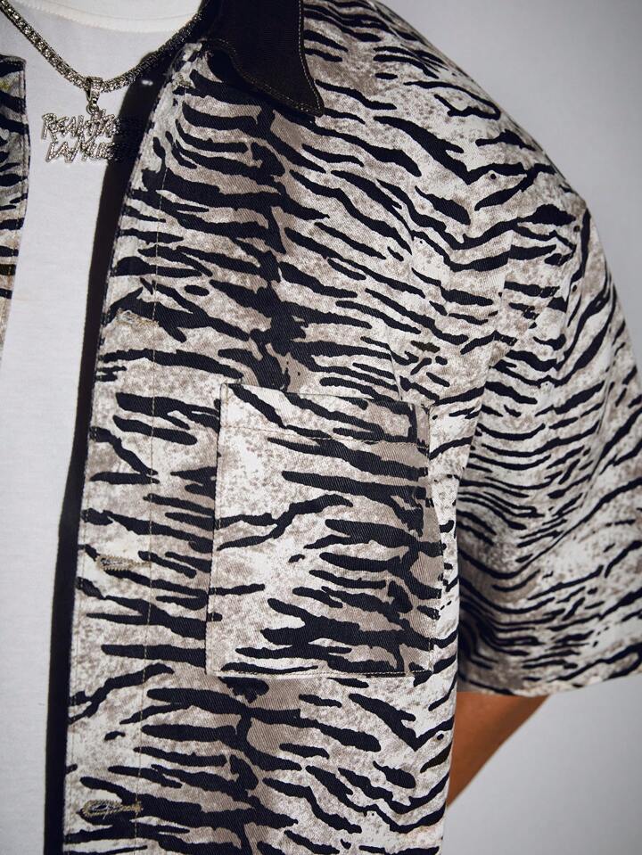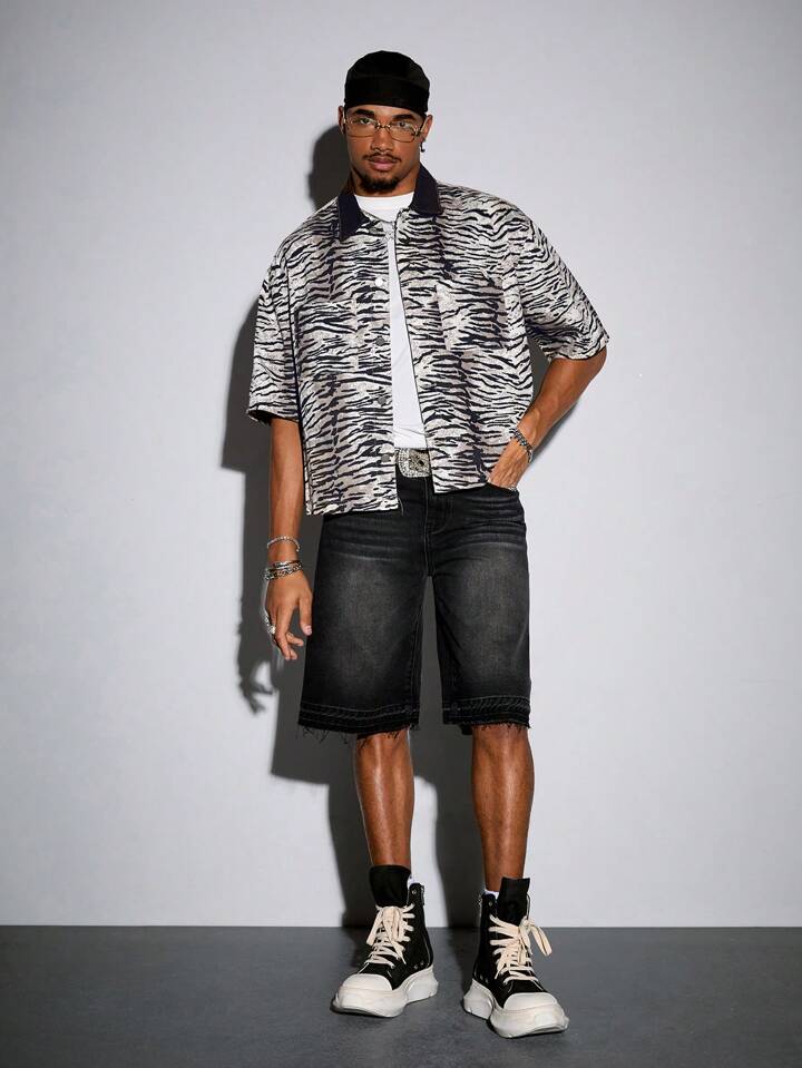 Grunge Punk قميص جينز براثب طبعة زيبرا للرجال