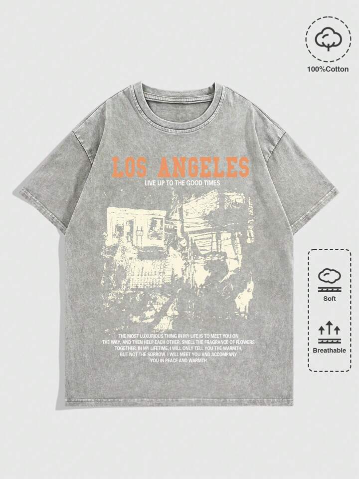 Grunge Punk تي شيرت رجالي كاجوال بطباعة شعارات ياقة دائرية كم قصير، صيفي