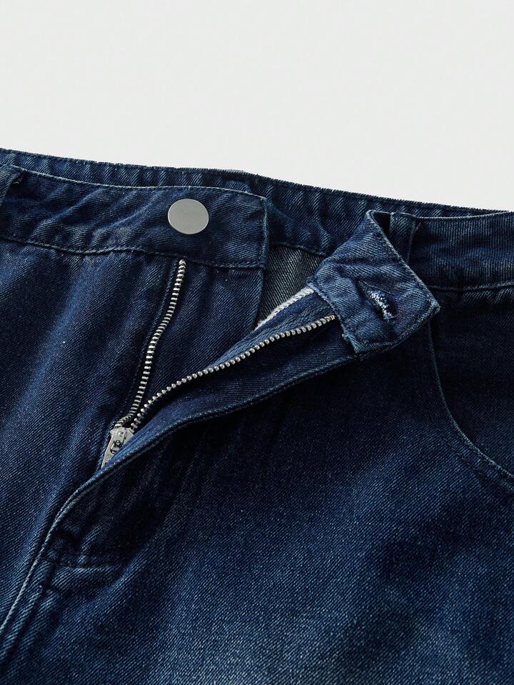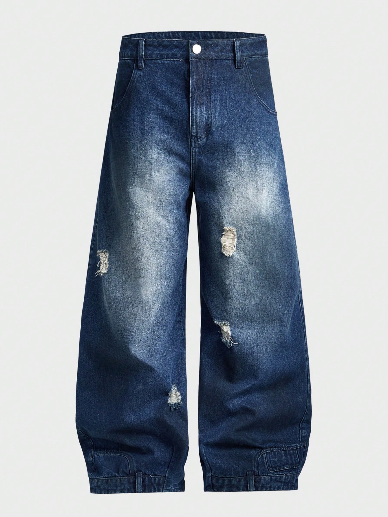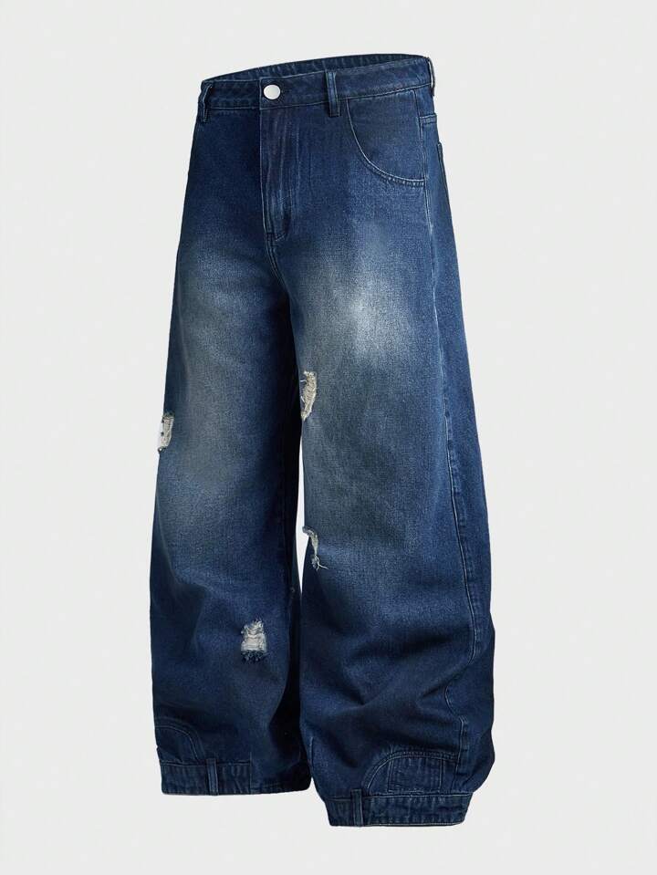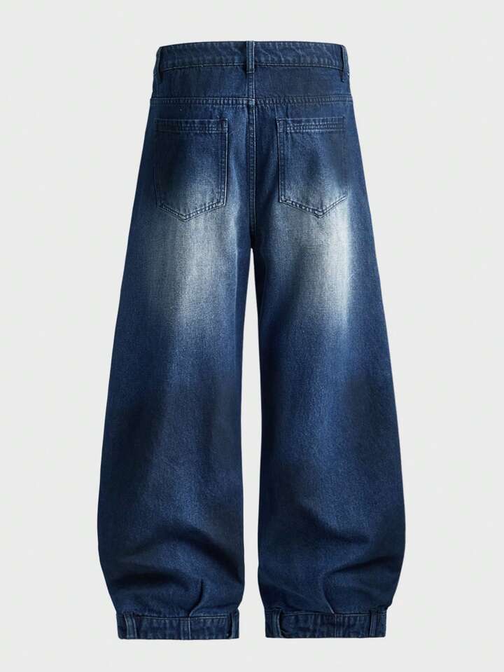 Grunge Punk بنطلون جينز واسع الساق مغسول ومبهت للرجال الكاجوال