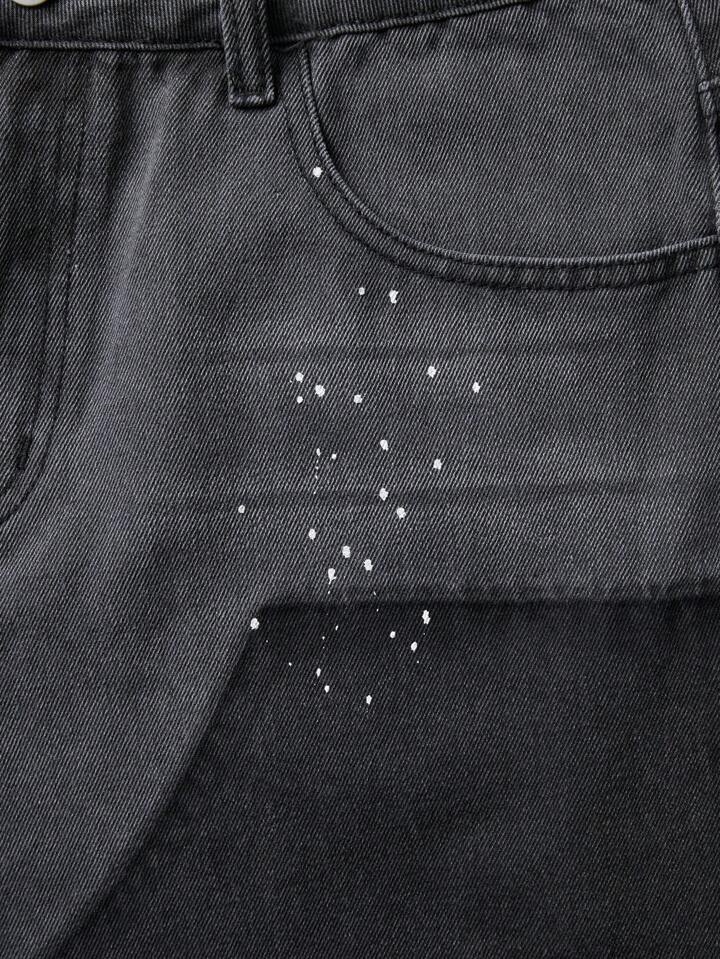 Grunge Punk شورتات جينز كاجوال مريحة وملتصقة بخيوط باللون المكسور المذهب حجم واسع مع جيوب للرجال