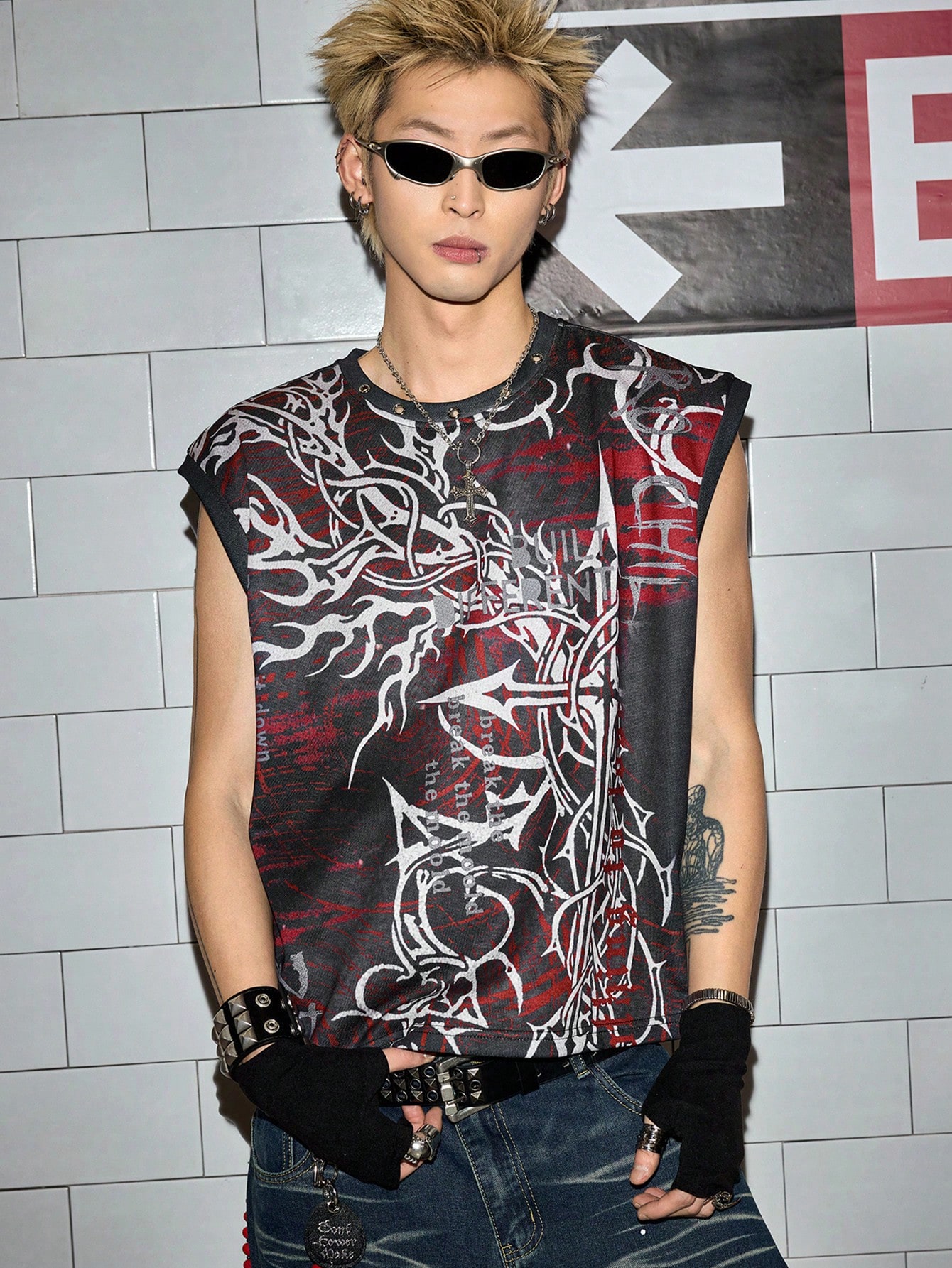 Grunge Punk ملابس علوية خزان ذو طراز زهري داكن مطرز بفتحات للرجال