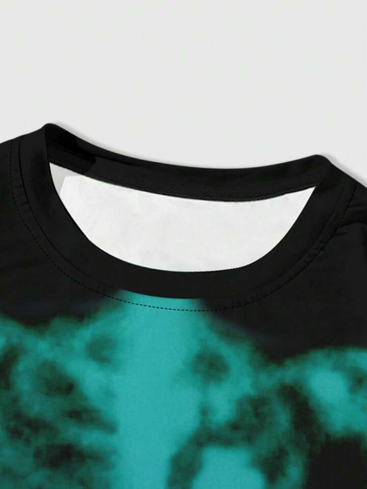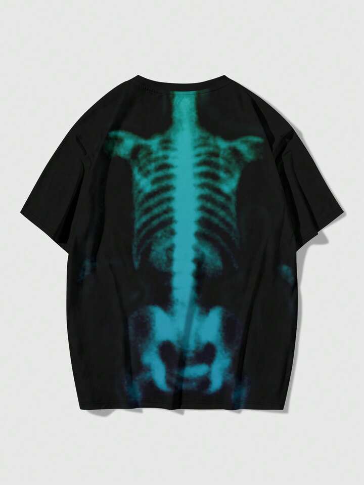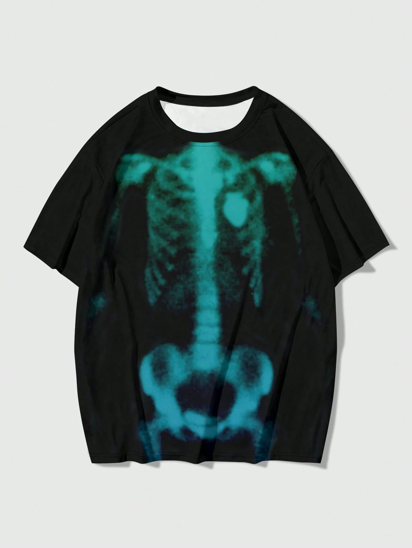 Grunge Punk قميص تي شيرت قصير الأكمام بطبعة جمجمة عصرية للرجال، صيفي