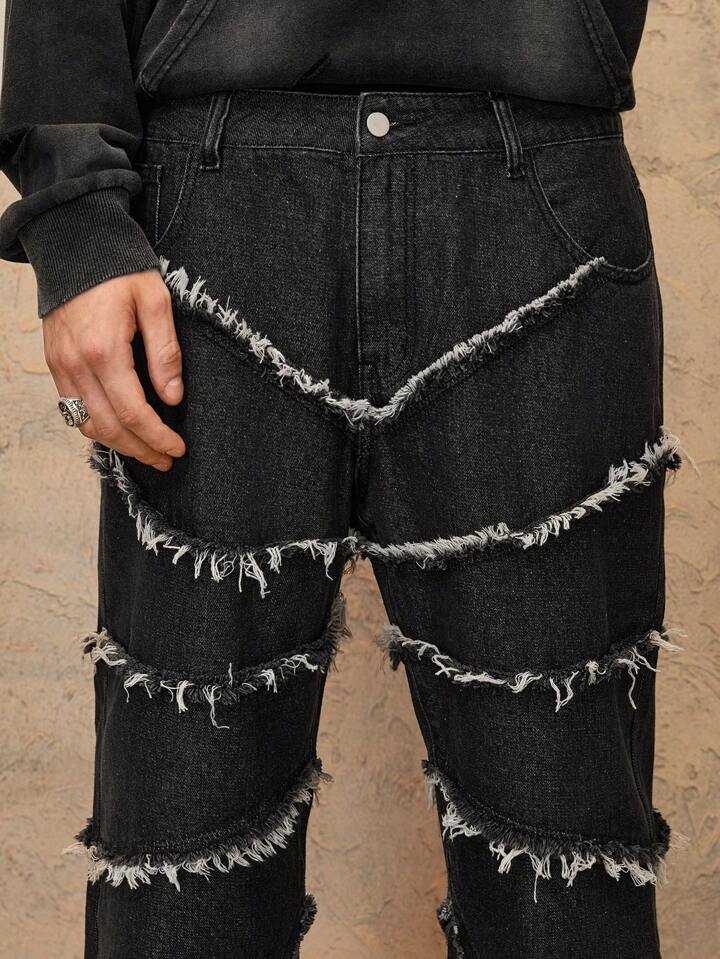 Grunge Punk بنطال جينز رجالي فضفاض بجيوب متشققة وساق مستقيمة للاستخدام اليومي