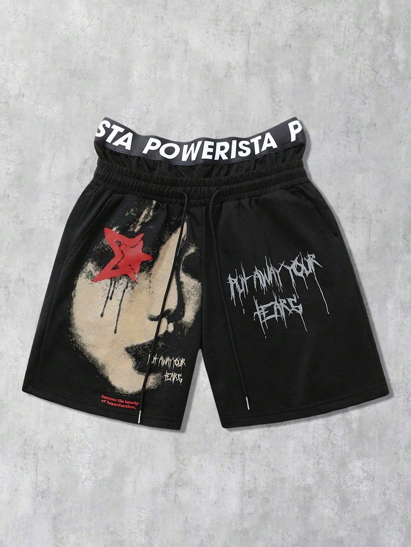Grunge Punk شورت رياضي للرجال بطبعة نجمة على الخصر بطراز جوثيك، للهالوين