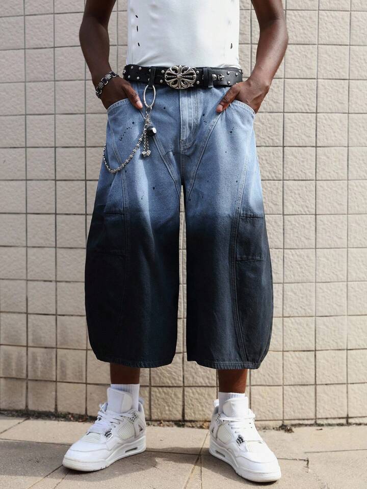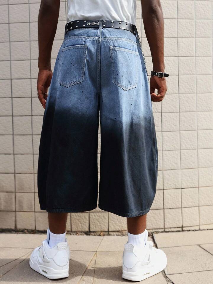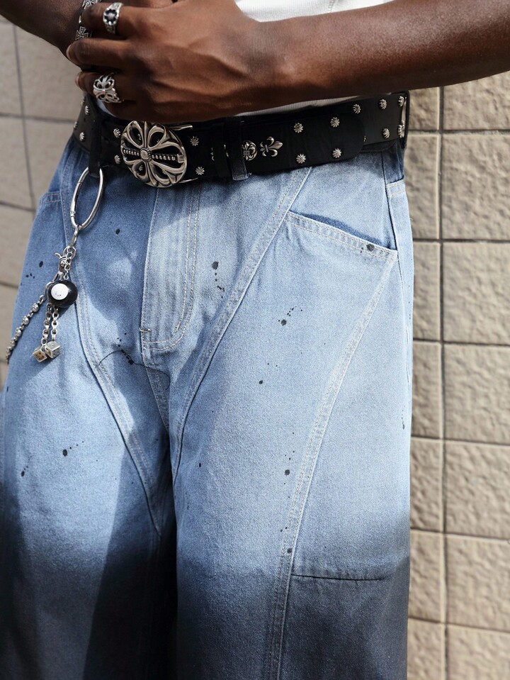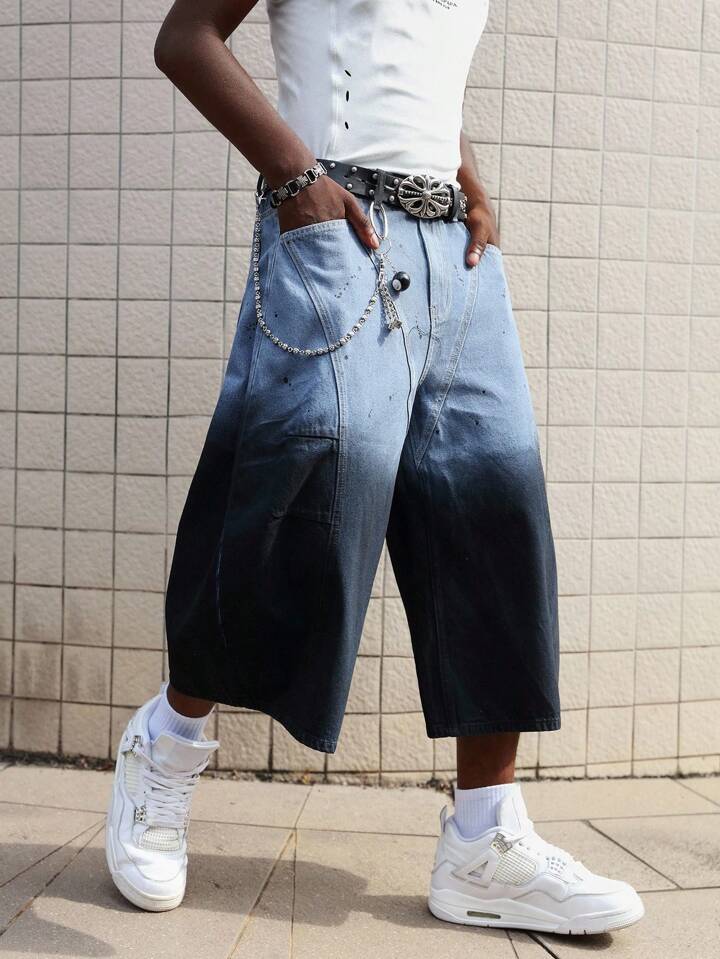 Grunge Punk سراويل جينز رجالي واسعة الساق مغسولة متدرجة اللون