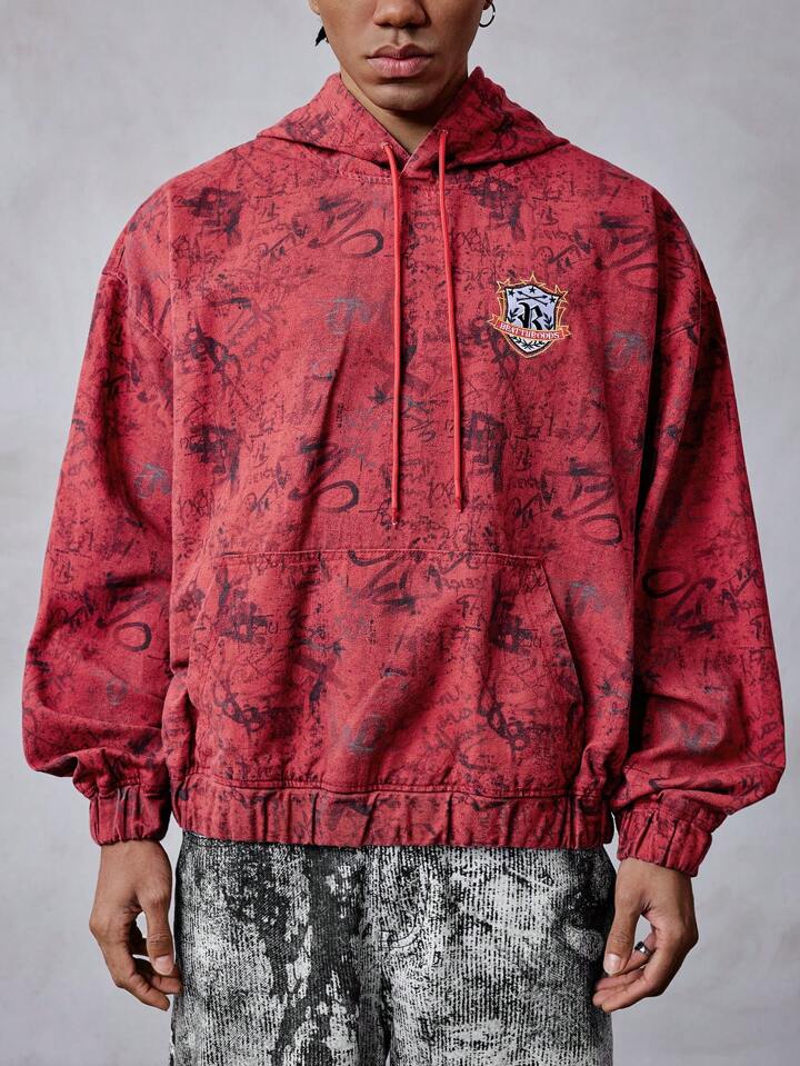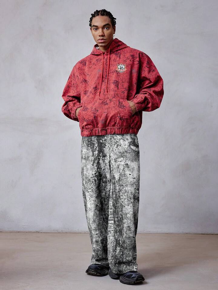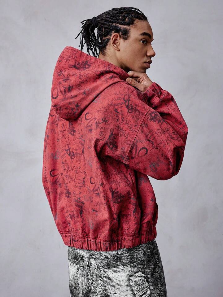 Grunge Punk جاكيت جينز كاجوال مزودة بغطاء رأس طويلة الأكمام ذات طباعة جيب للرجال