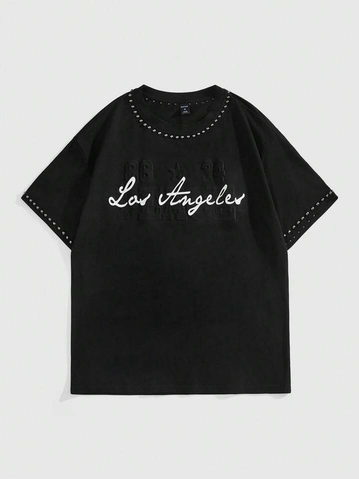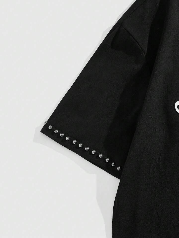 Grunge Punk تي شيرت كاجوال رجالي بطبعة حرفية وأكمام قصيرة وياقة دائرية