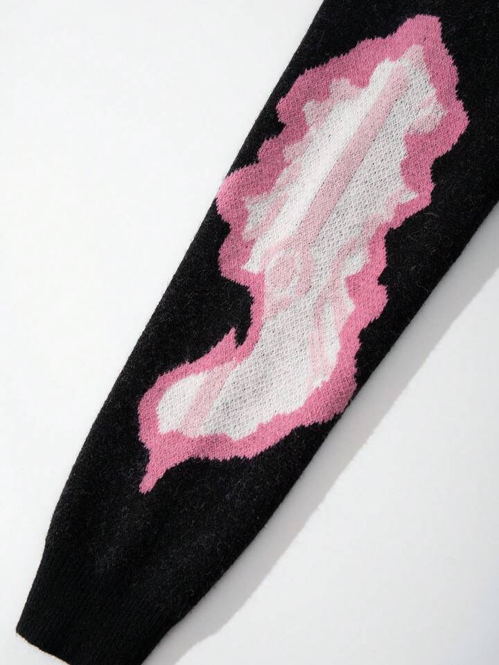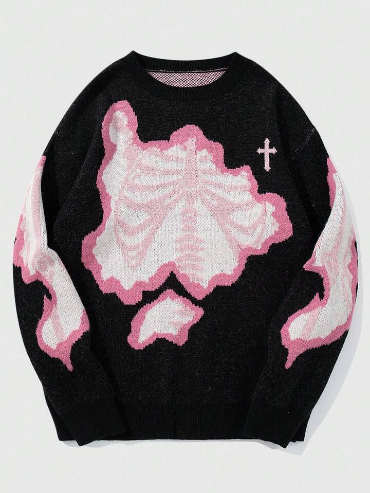 Grunge Punk كنزة صوفية كاجوال فضفاضة بطبعة هيكل عظمي وصليب، طراز جرانج، للخريف والشتاء