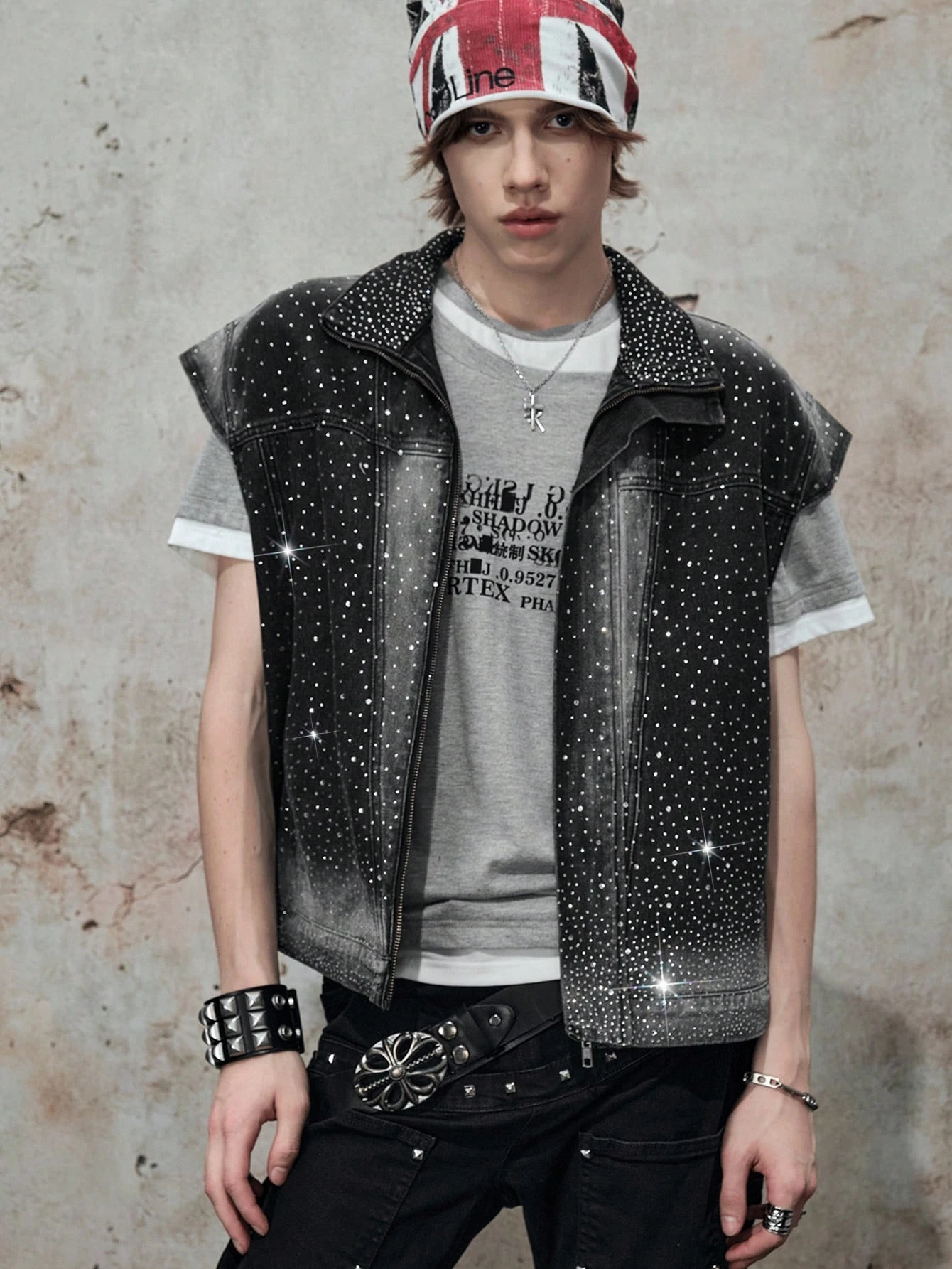 Grunge Punk ملابس علوية جينز بلا أكمام لامع، طراز شارع عصري للصيف