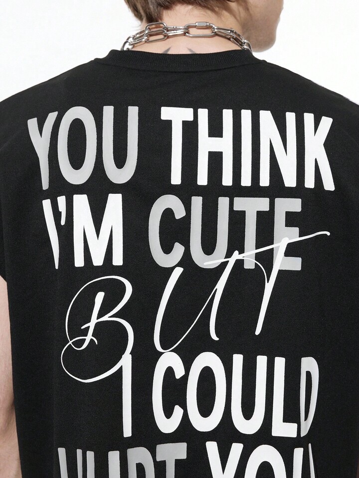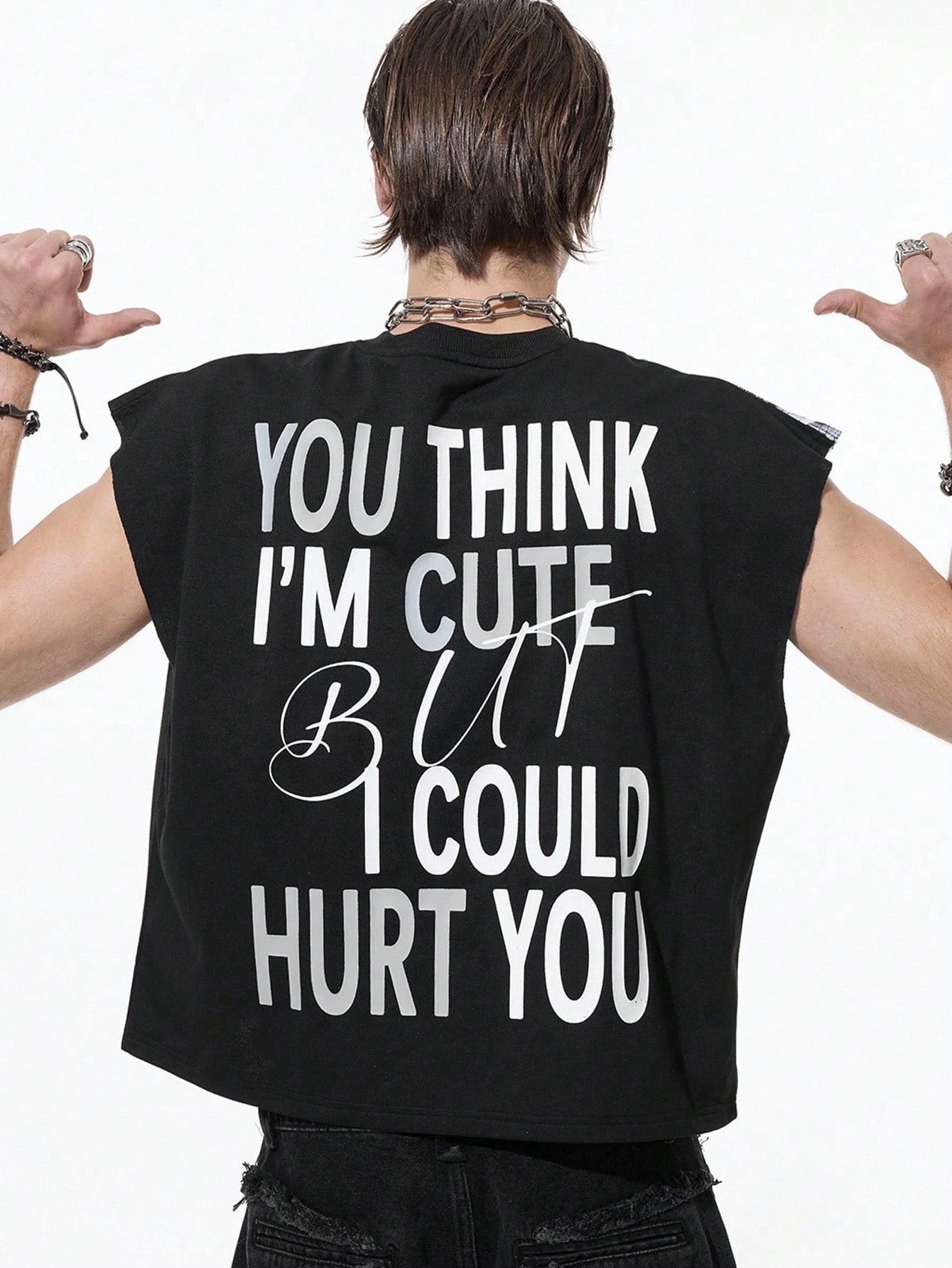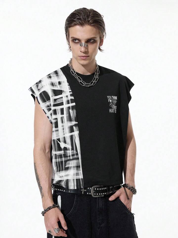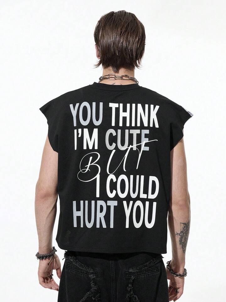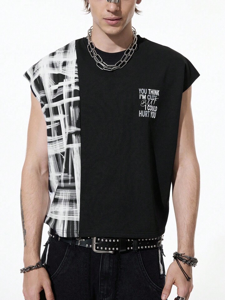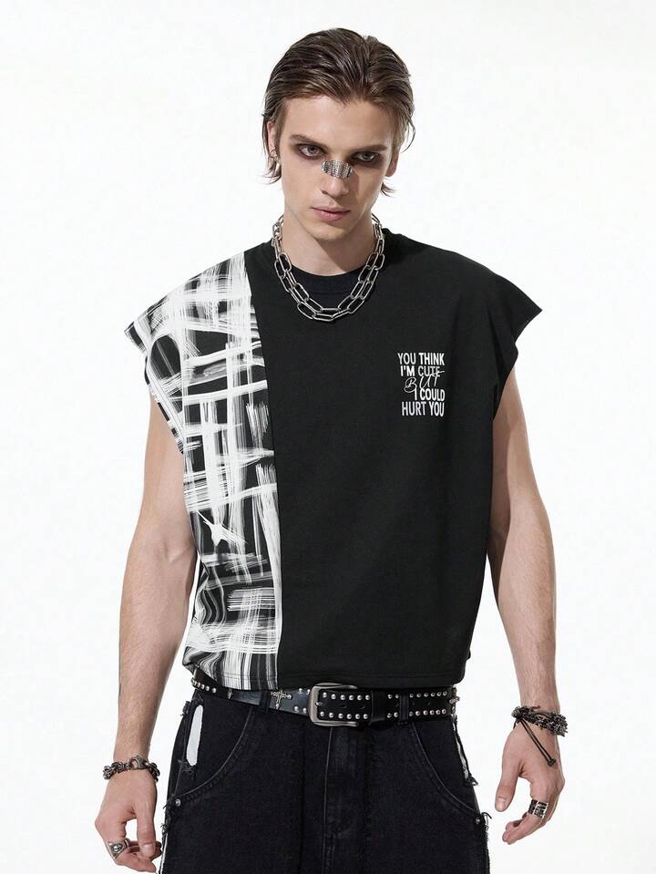 Grunge Punk ملابس علوية أكمام بلا أكمام بطبعة شعار فضفاض للرجال