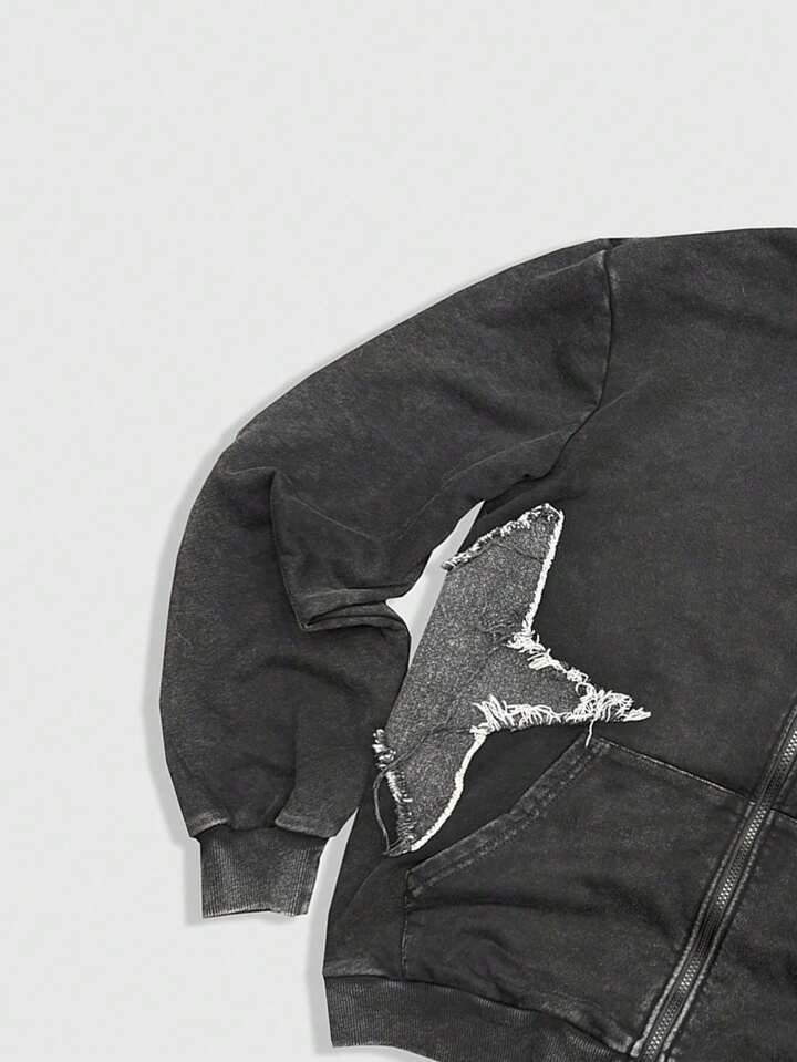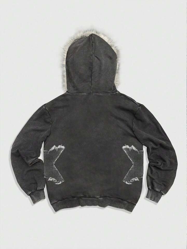 Grunge Punk هودي كاجوال بسوستة أمامية وجيب للرجال ذو أكمام طويلة