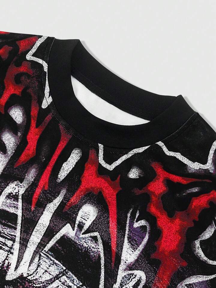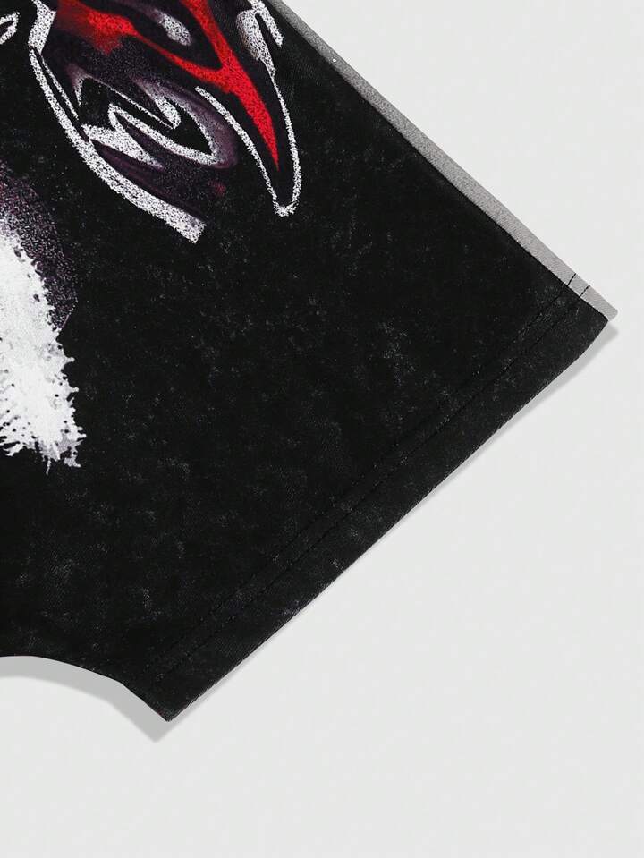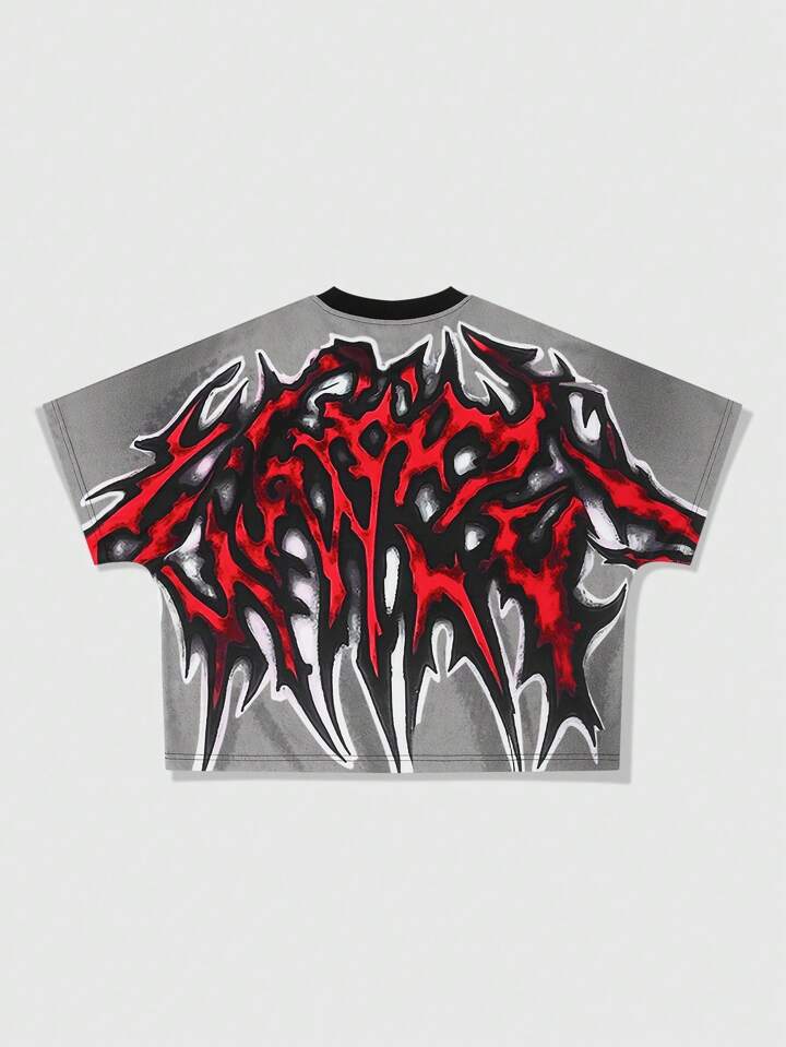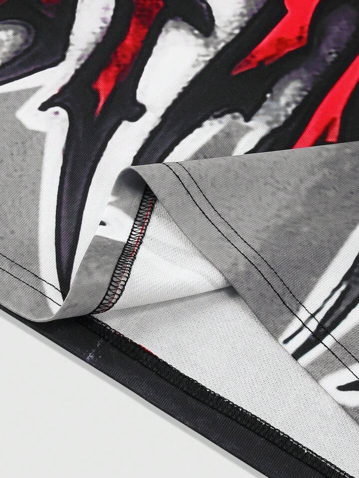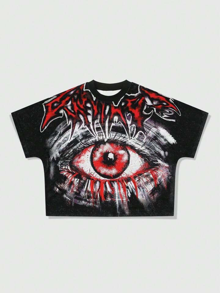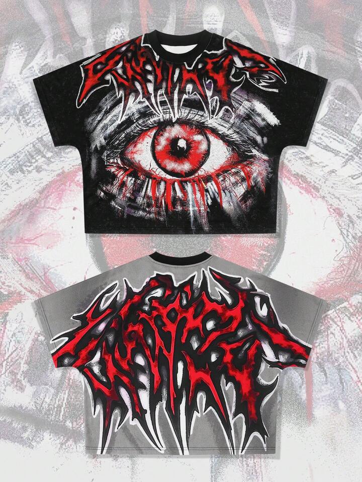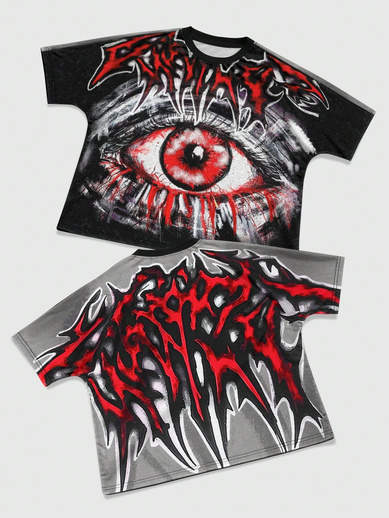 Grunge Punk تي شيرت رجالي كاجوال قصير الأكمام بياقة دائرية مطبوع عليه بصمة العين للصيف