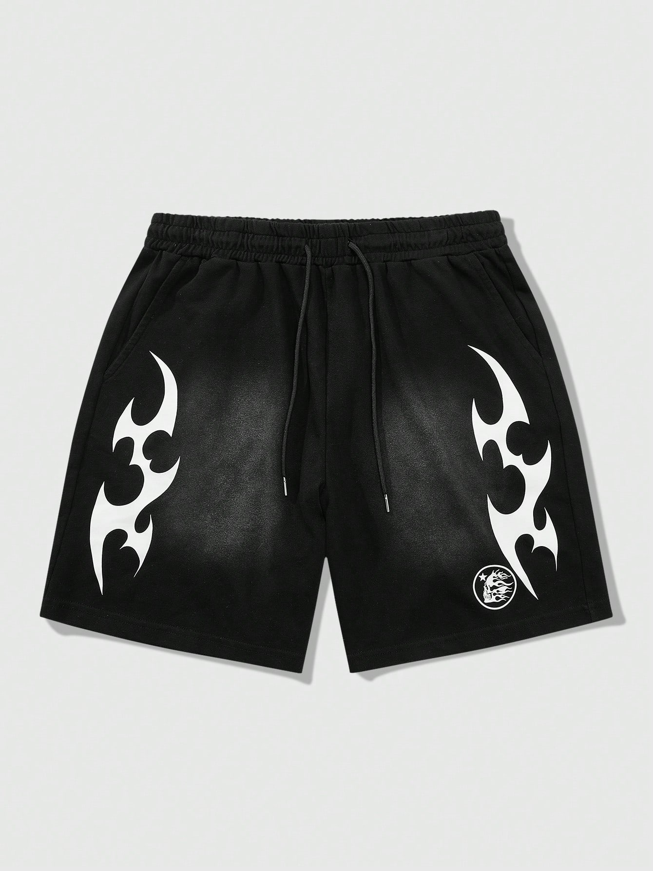 Grunge Punk شورت كاجوال للرجال بخصر مرن مطبوع بطبعة اللهب الرجعية