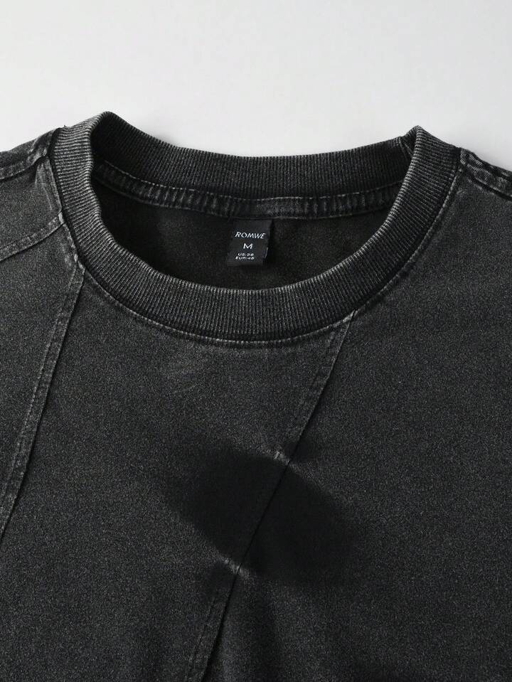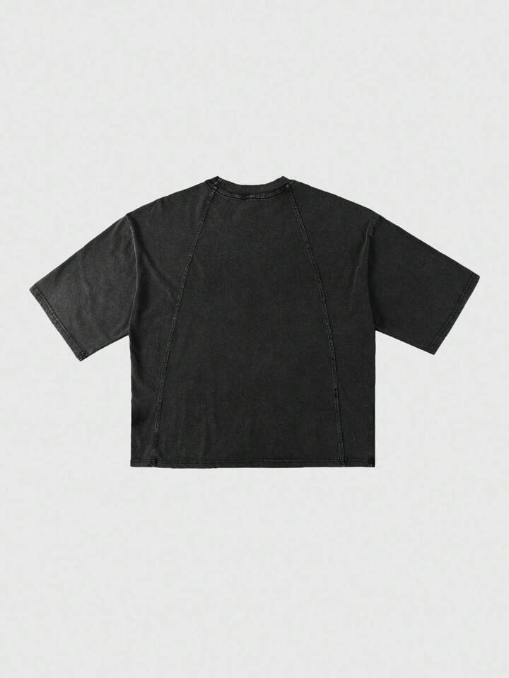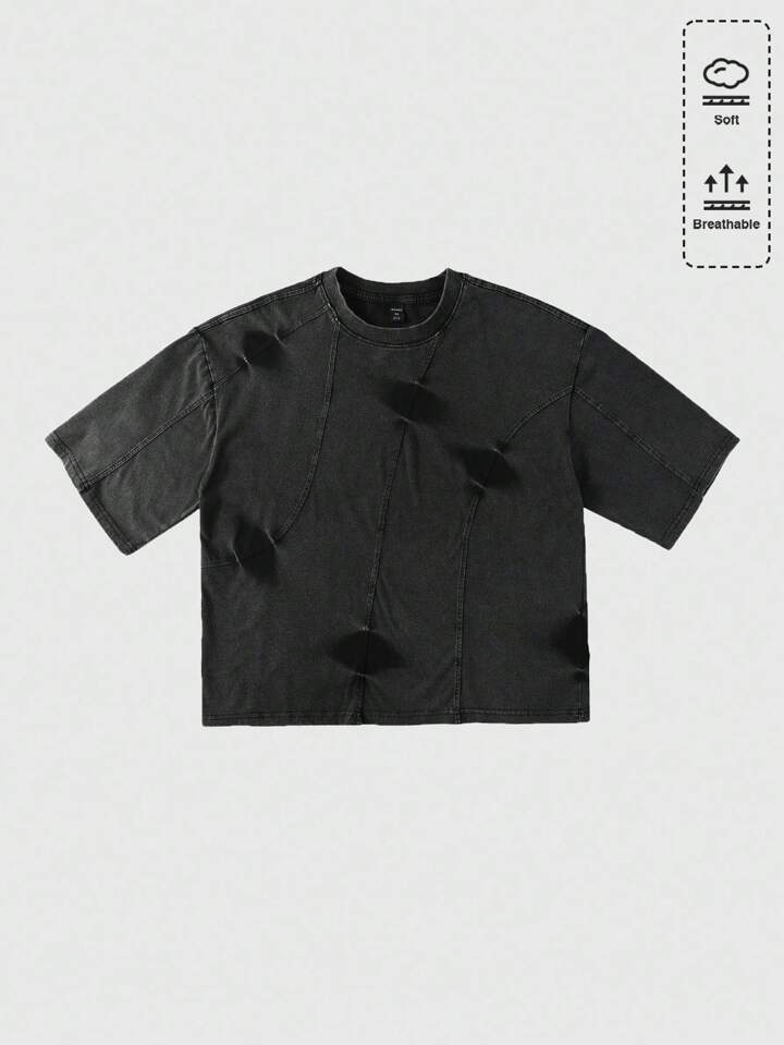 Grunge Punk تي شيرت كروب بأكمام قصيرة للرجال مغسول ومزخرف بشرائط