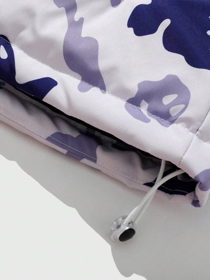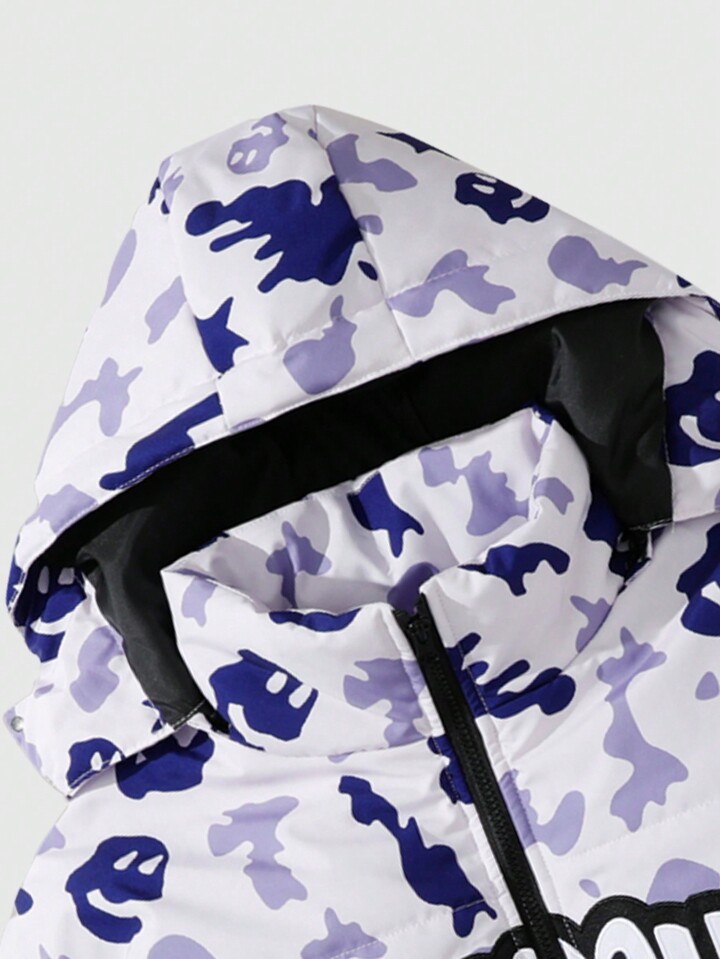 Grunge Punk معطف رجالي مبطن مزود بقلنسوة بطبعات حرف وشبح كتف منخفض للشتاء