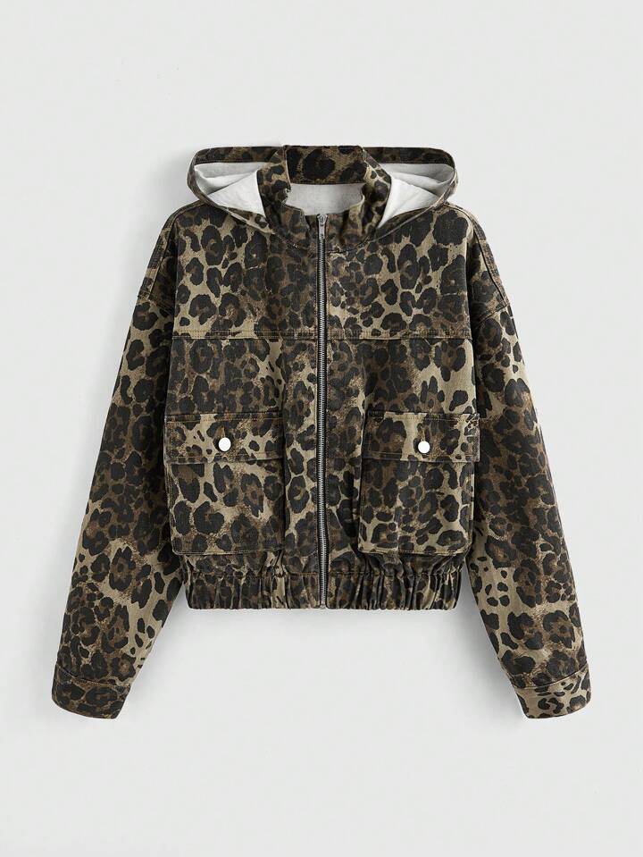 Grunge Punk جاكيت جينز للنساء بجيب شحن مطبوعة بنمط النمر الشوارع