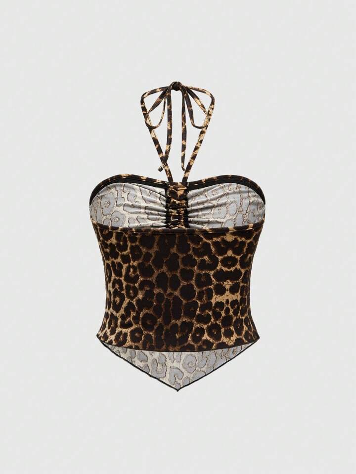 Grunge Punk ملابس علوية خزان مكشكش مخطط بالنمر والزهور الوردية طراز الألفية الثانية، حزام رفيع مجعد عتيق لحفلات الموسيقى و العطلات النسائية
