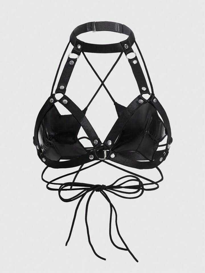 Grunge Punk حمالة صدر جلد صناعي أشرطة متقاطعة رسن