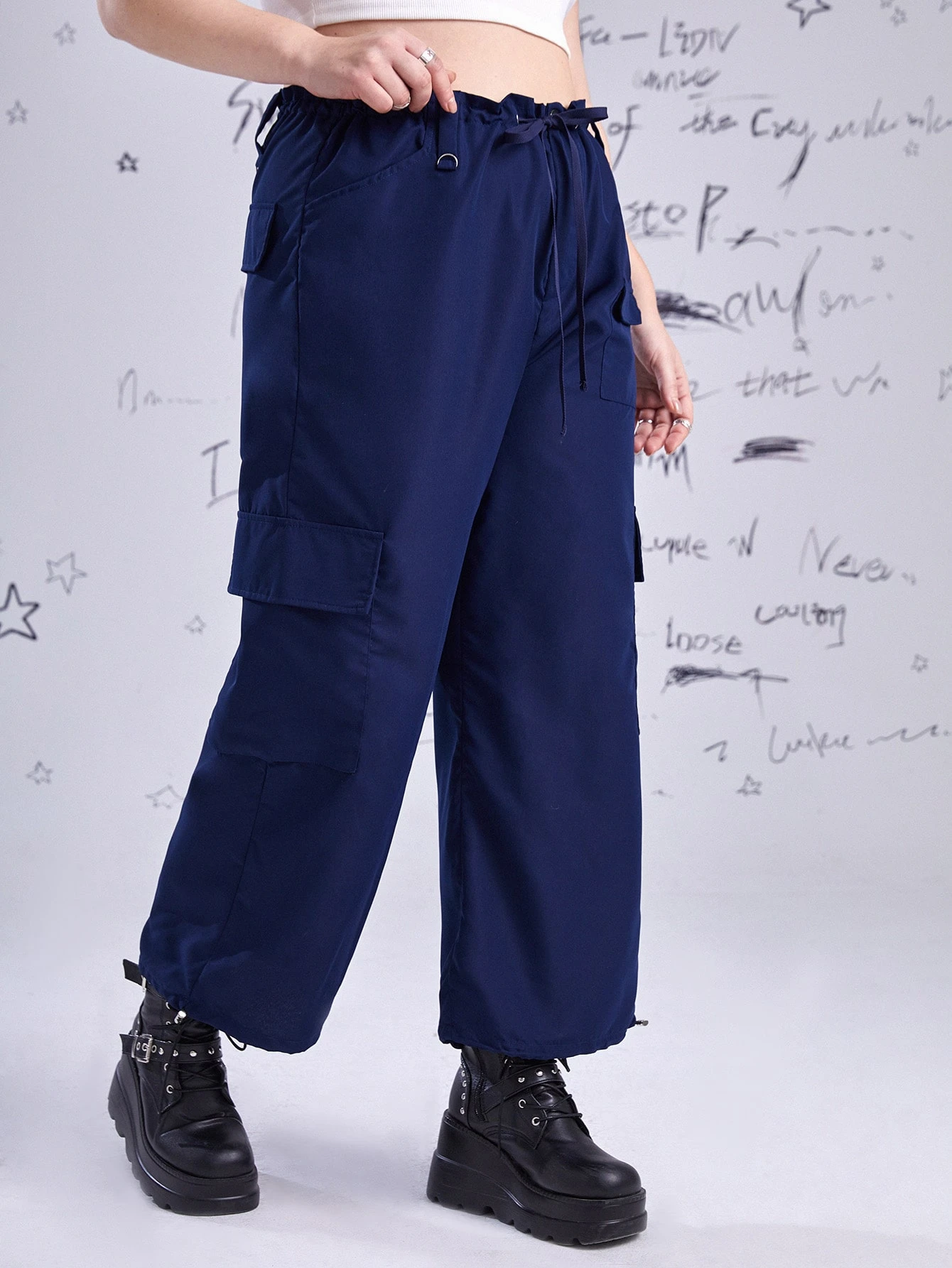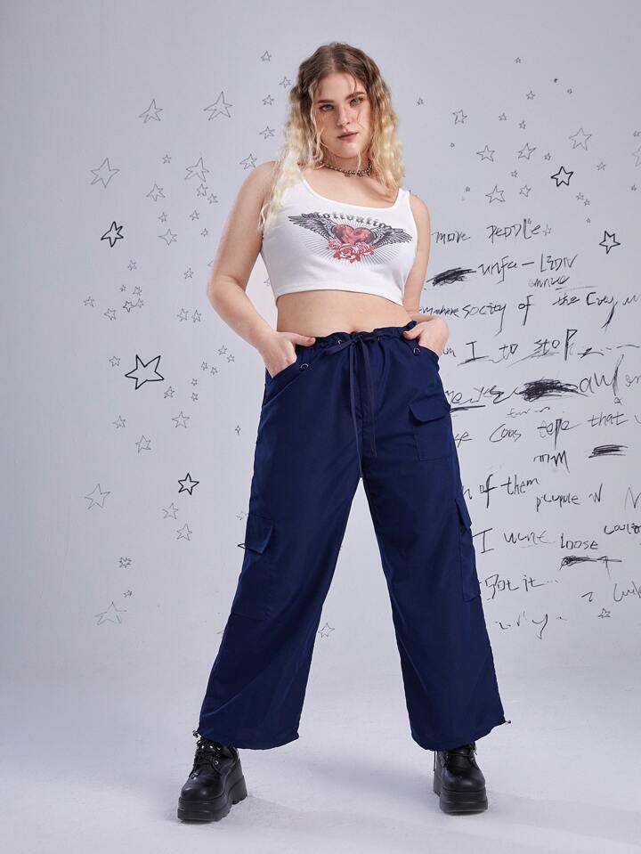Grunge Punk بنطلون كارجو جيب قلاب حافة رباط مقاس كبير