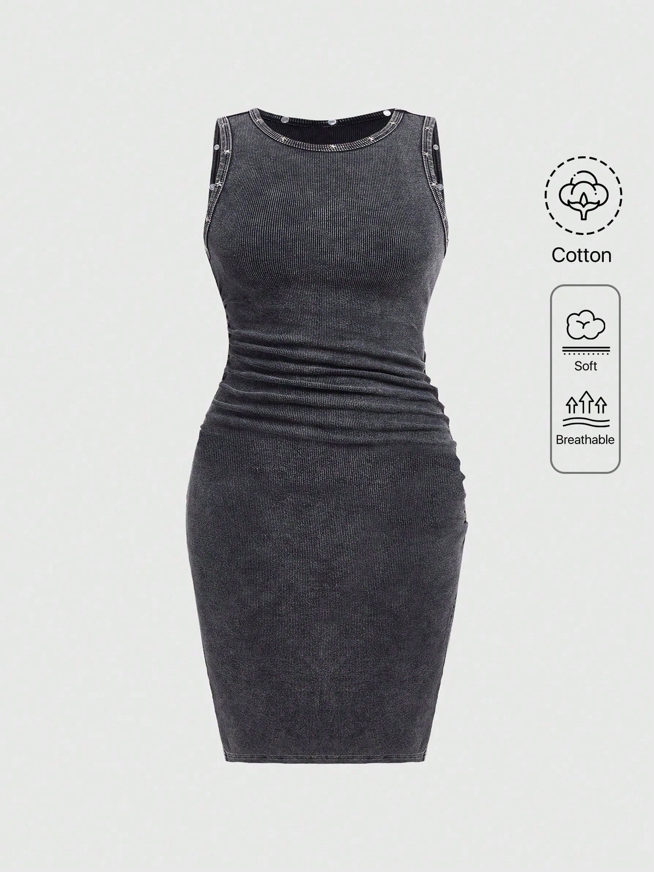 Grunge Punk فستان أنيق بدون أكمام مزين بالزينة النيزكية لسيدات البدناء، بطراز بنكي