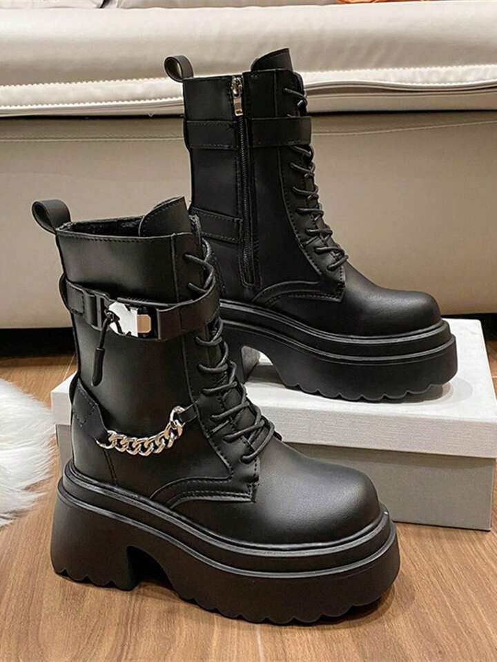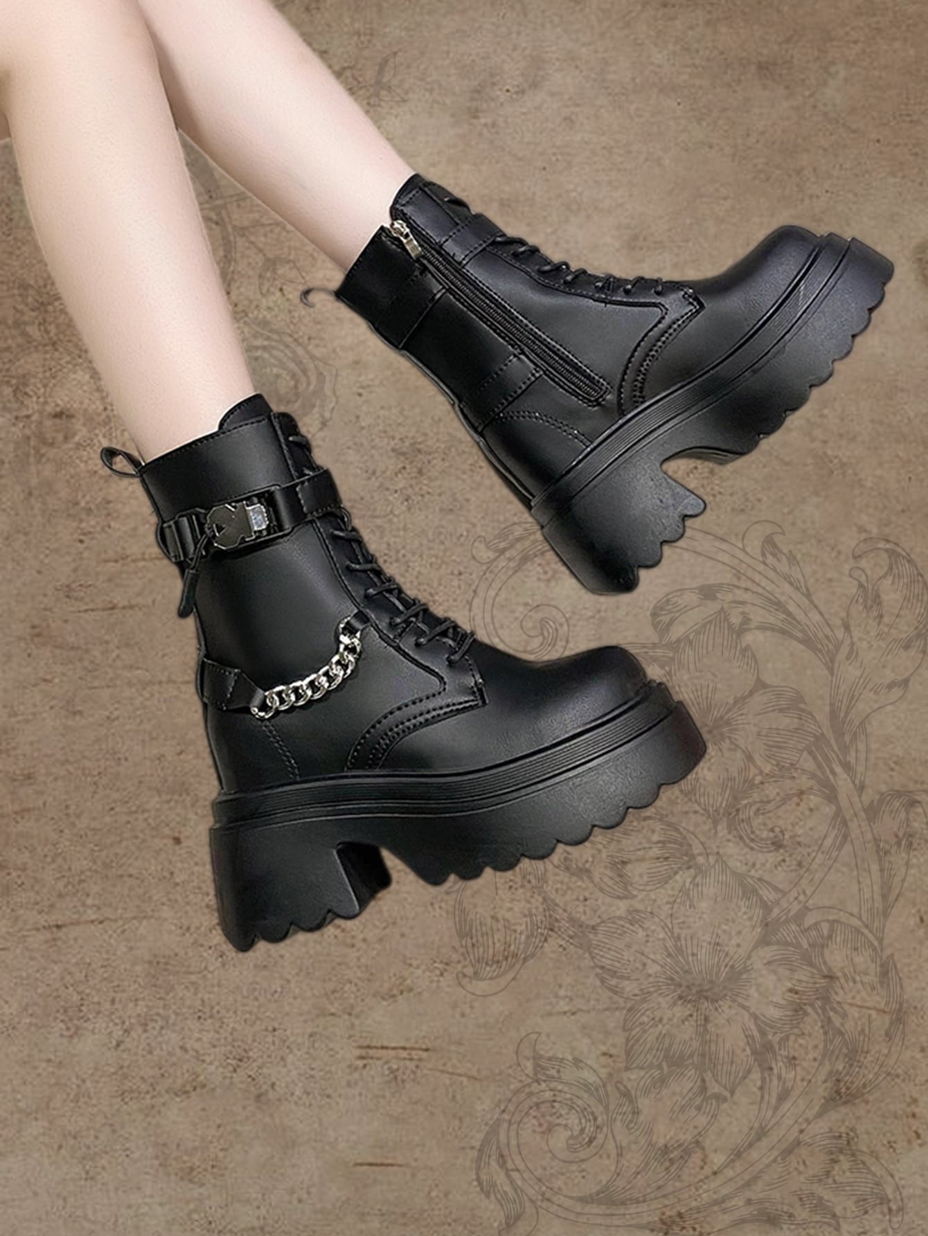 Grunge Punk أحذية بوت عصرية نسائية رباط