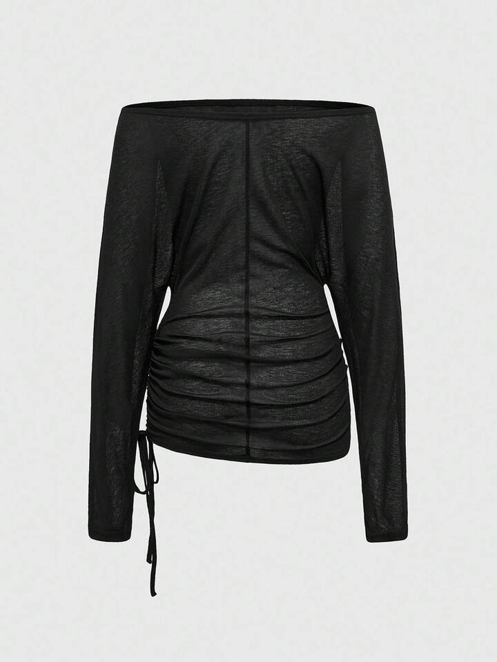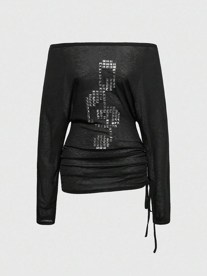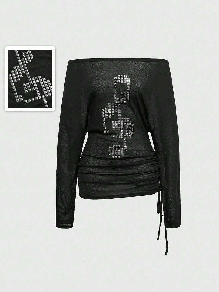 Grunge Punk ملابس علوية كتف مكشوف بطراز بانك مزينة بالصليب والزنابير، بأكمام طويلة