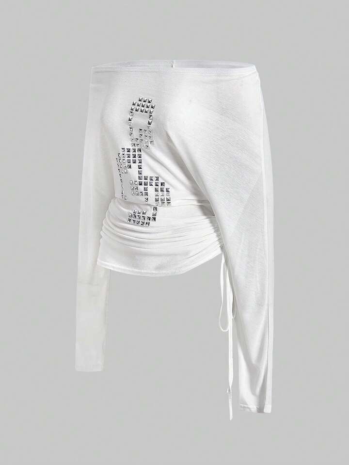Grunge Punk ملابس علوية نسائية كورية طويلة الأكمام بطراز بانك روك مع صليب مطرز على الكتف
