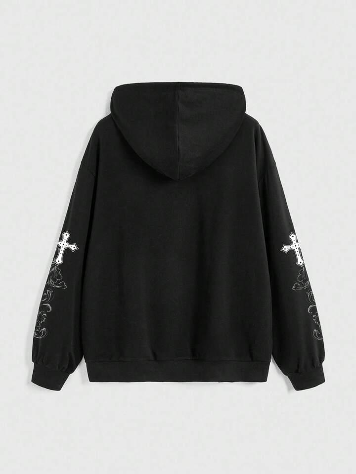 Grunge Punk بلوزة رياضية مقنعة مزينة برسومات جرافيكية مع جيوب للنساء، بسحاب أسود، طراز بانك ذو أشواك، مناسبة للخريف والشتاء وحفلات الموسيقى الداكنة