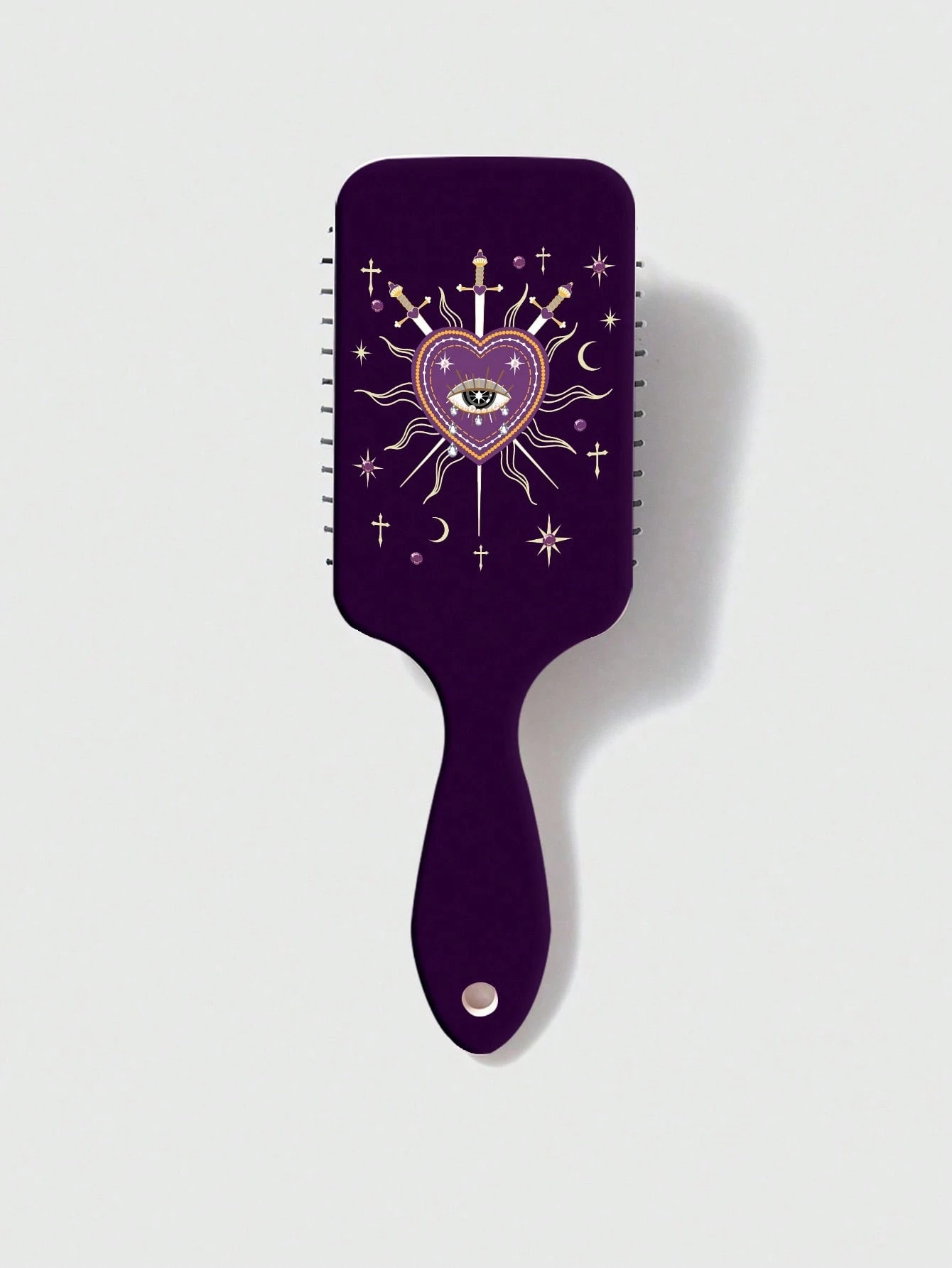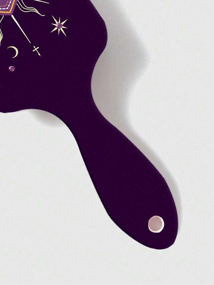Grunge Punk فرشاة شعر ذات وسادة هوائية مطبوعة بتصميم قطرة دمع بنفسجية، سيف، نجمة وقمر