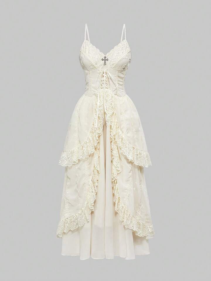 Grunge Punk فستان قصير ذو رقبة على شكل حرف V والقصة متعددة الطبقات من الشيفون المكشكش والدانتيل والفيونكة بطراز ريترو رينيسانسي لطراز لوليتا والقصور وحفلات المنتجع والحفلات الرسمية