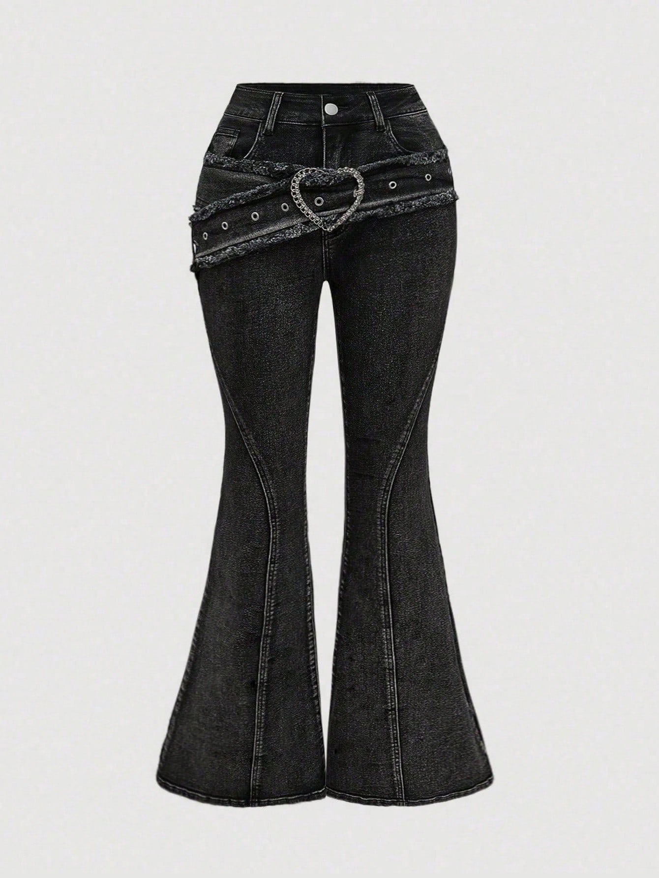 Grunge Punk حزام قطني بنمط رجعي غروندي Y2K ومشبك معدني مرصع بالراين على شكل قلب، مناسب لجينز الكلاسيكي الرشيق وذو حجم كبير