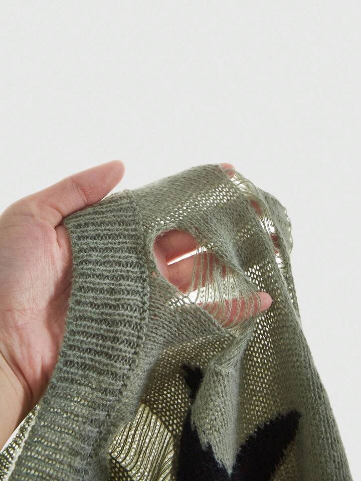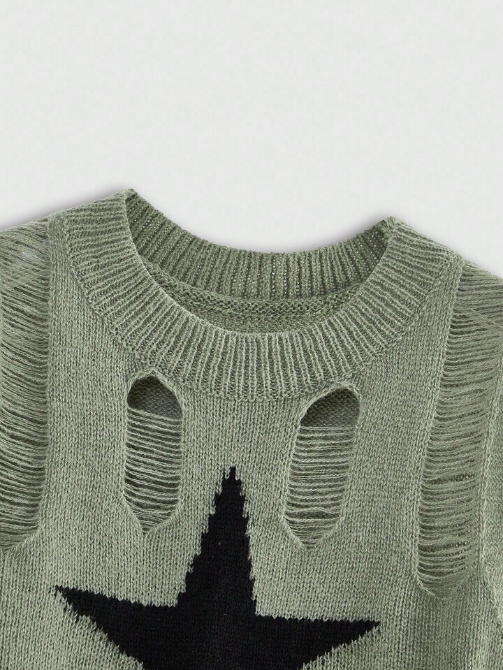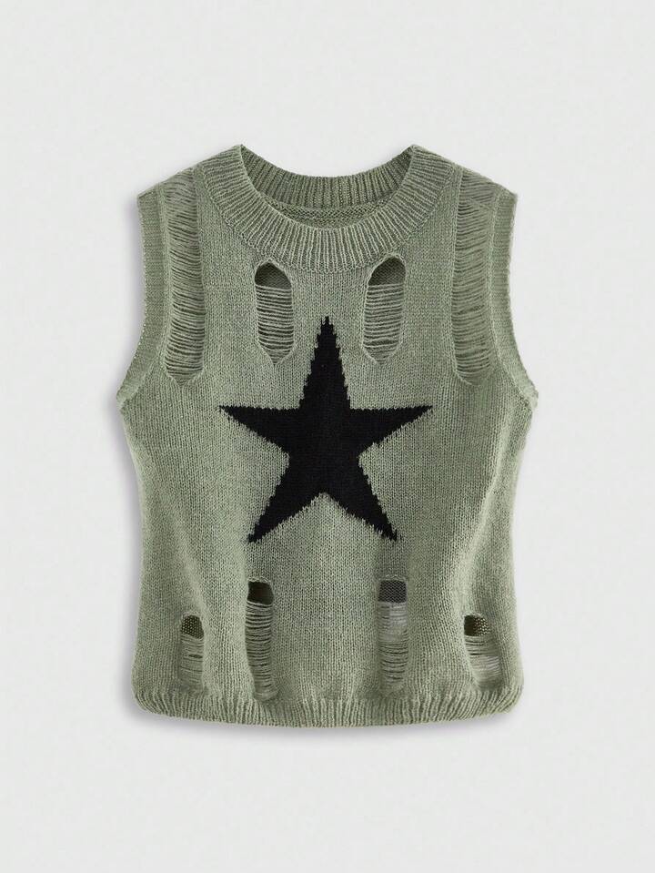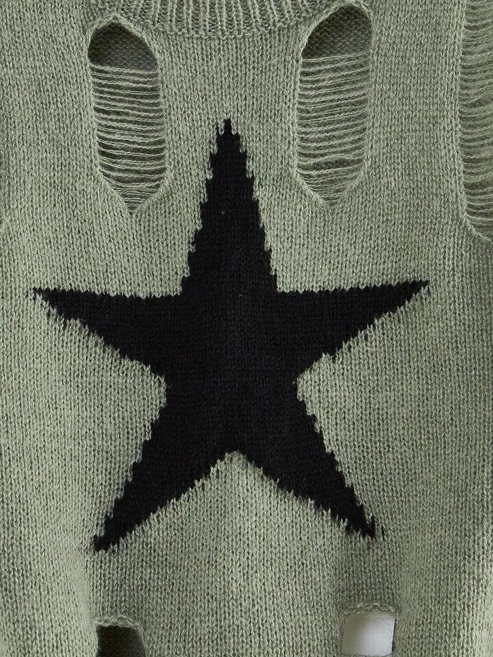 Grunge Punk سترة محبوكة منقوش عليها نجمة مع تفاصيل متعرجة ورقبة دائرية