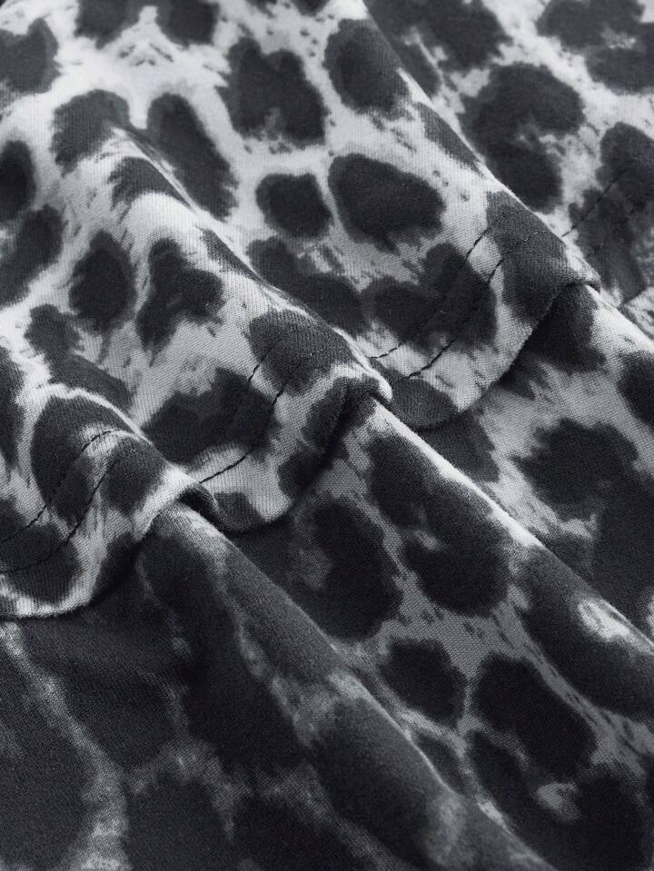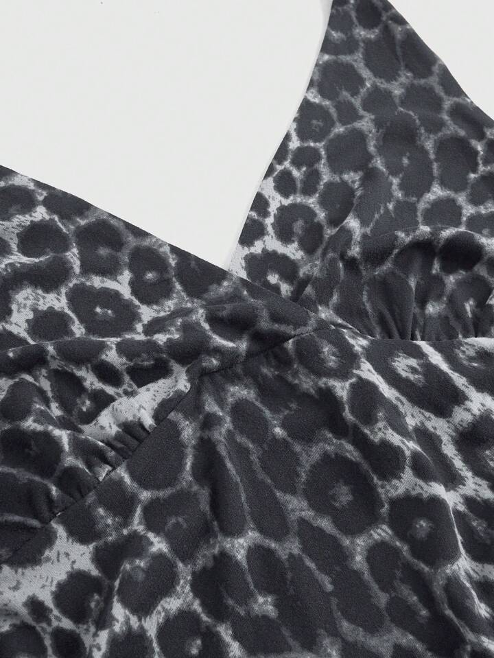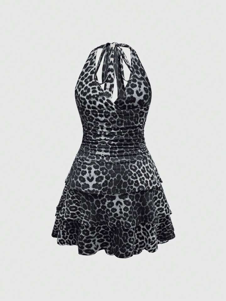 Grunge Punk فستان ضيق الفتاة الجذابة ذو الطبقات والحاشية المجعدة بطبعة نمر للحفلات