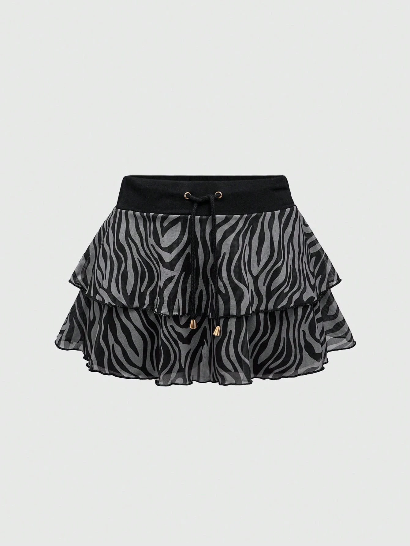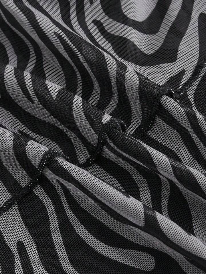 Grunge Punk تنورة قصيرة شبكية سوداء وبيضاء بطبعة الزبرا ذات الخصر المنخفض جدًا للنساء
