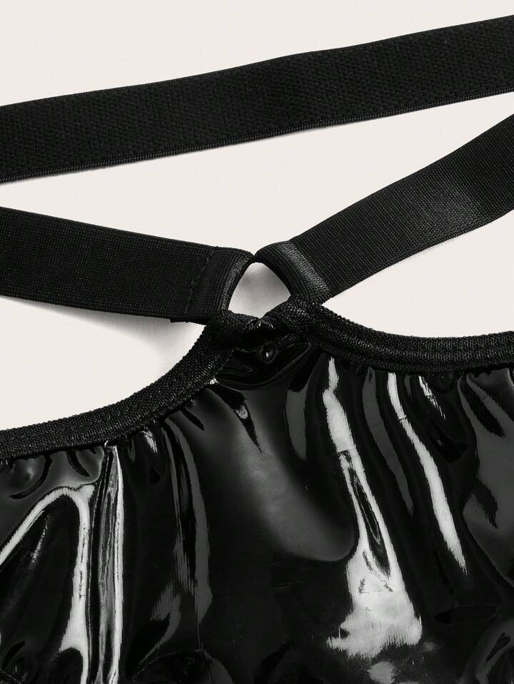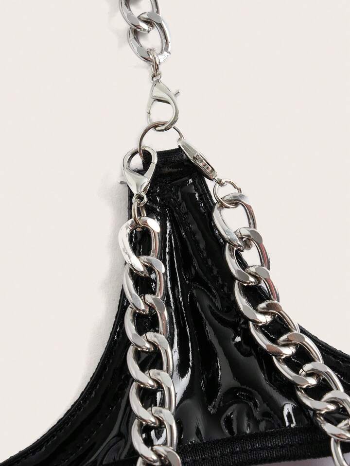 Grunge Punk طقم ملابس داخلية موحدة اللون قص مجوف متصل بسلسلة حلقة معدني