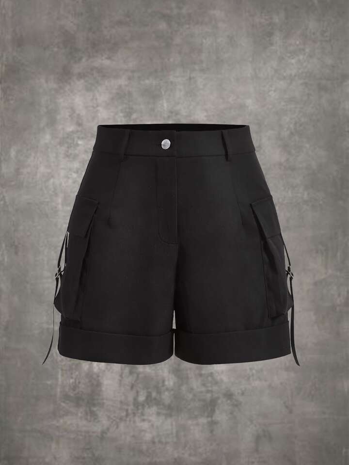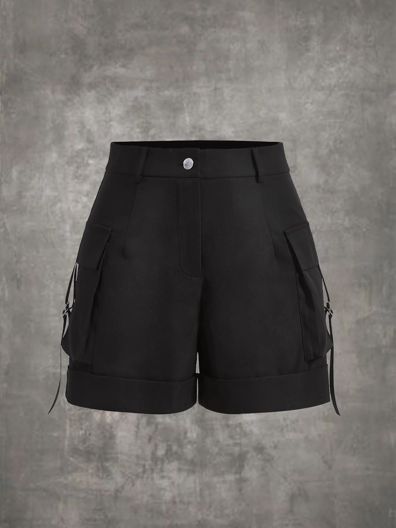 Grunge Punk بنطلون قصير موحدة اللون جيب قلاب
