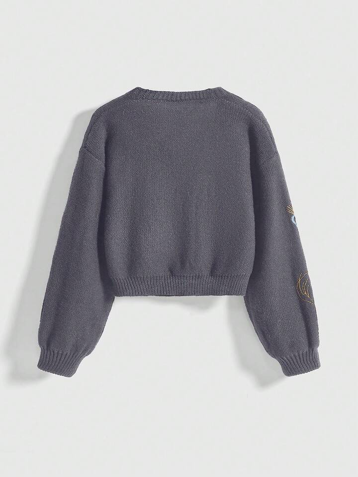 Grunge Punk كارديجان مخرم منسوج بتطريز نجوم وقلب وشمس على الطراز القديم